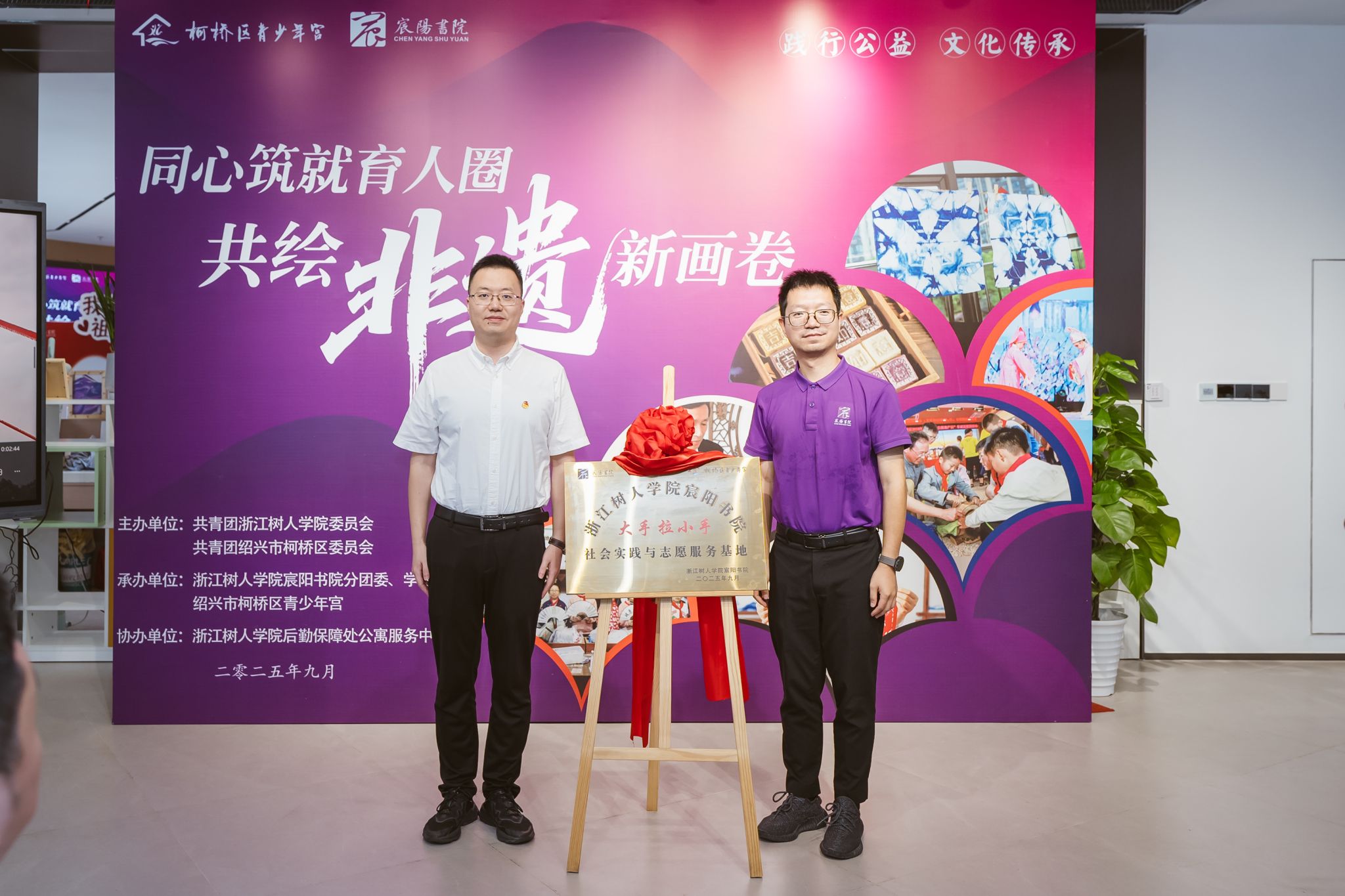 为深入推进非物质文化遗产传承与青少年教育融合发展,2025年9月29日下午,“同心承‘越’韵·共绘非遗魂”——304永利集团官网宸阳书院与柯桥区青少年宫共育非遗传承活动暨实践基地授牌仪式,在304永利集团官网杨汛桥校区“树人之家”学生社区举行。共青团柯桥区委书记缪天赐、副书记吴林峰,柯桥区青少年宫主任陈钢、活动部长张小琴,多位市级非遗传承人、民间文艺人才及社团教师代表,校团委书记丁赞华、宸阳书院常务副院长王伟君等领导嘉宾出席仪式,与书院师生代表共同见证这一校地协同育人的重要时刻。