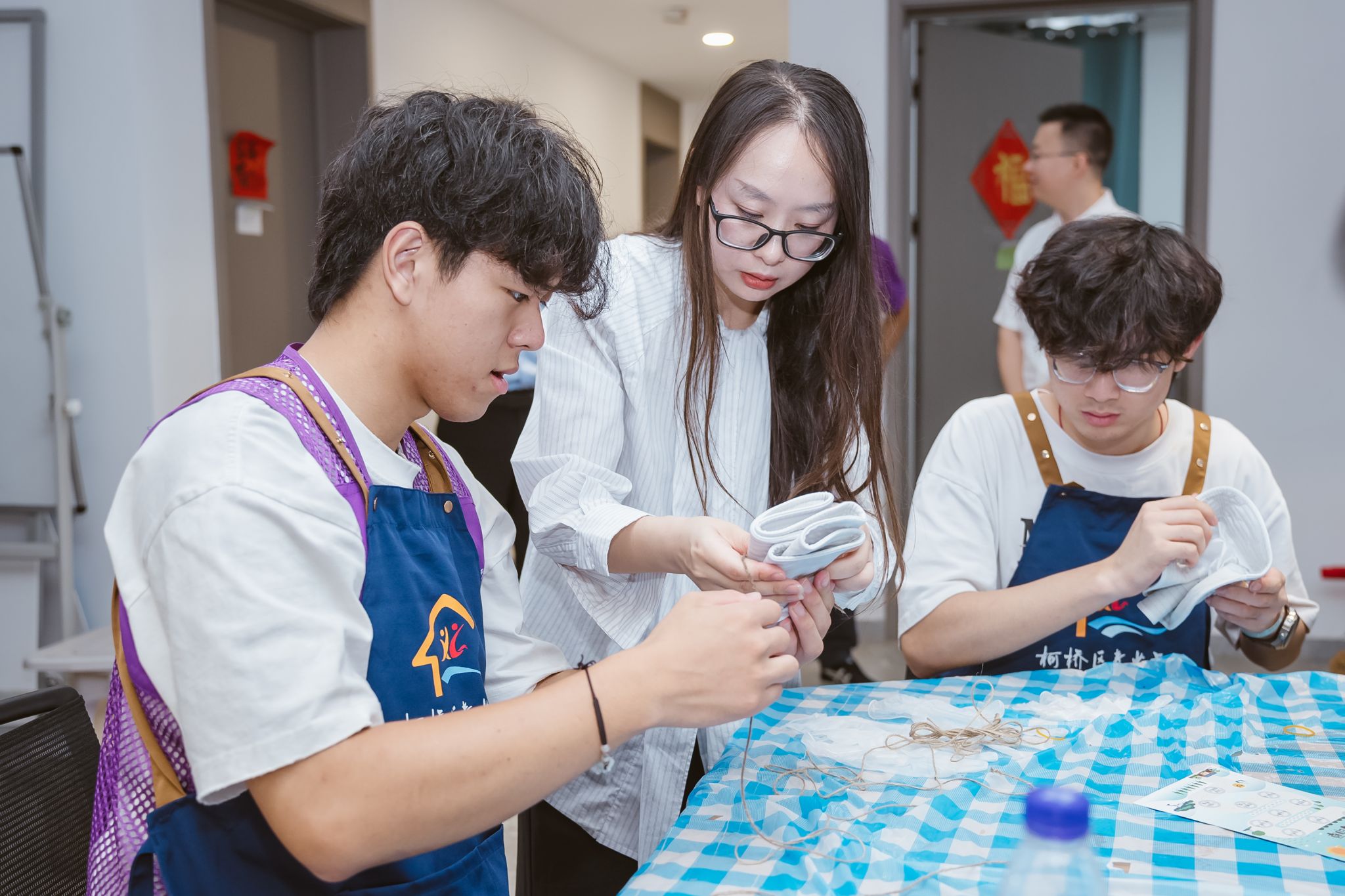 仪式结束后,志愿者培训环节随即展开,为后续非遗课程与游园体验活动做好充分准备。随着非遗课程与游园项目化体验活动陆续开展,学生们在扇艺、剪纸、花雕、箍桶、手作大糕等非遗项目中沉浸式体验越地传统文化的独特魅力,从“受教育者”逐步转变为“教育的参与者和传承者”。