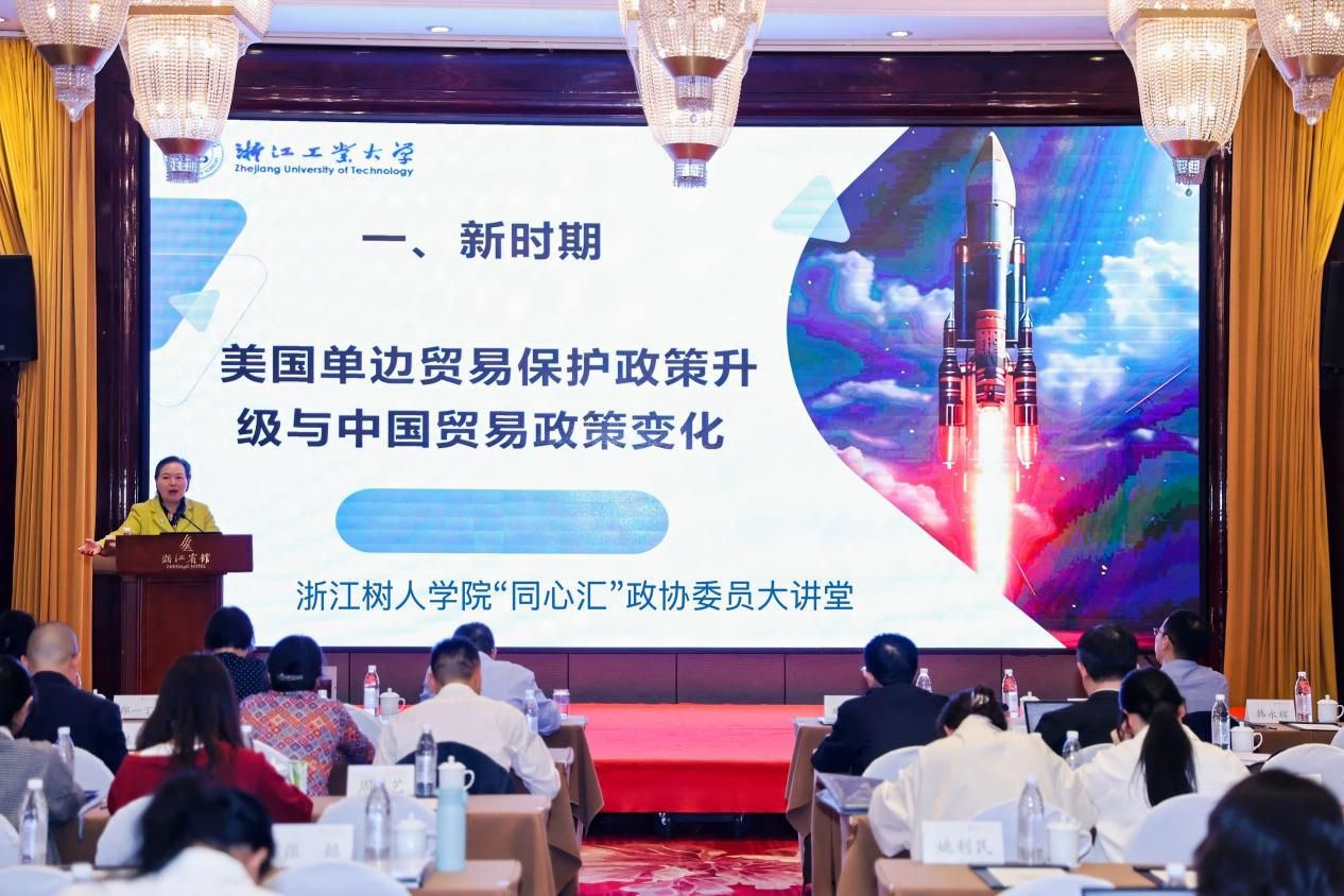 10月19日,由经济与管理学院主办的304永利集团官网“同心汇”政协委员大讲堂在浙江宾馆贵宾楼莲花厅顺利举行。本次讲座特邀第八、九届浙江省政协委员程惠芳教授,作题为《新时期中国产业与贸易政策协同发展机制与实施路径》的学术报告。