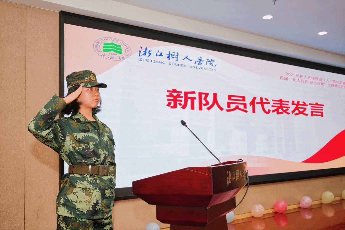 接着,冯淑娟进行了总结讲话。她回顾了先锋营一年以来所承担的各项学校事务工作,并对先锋营营员在服务师生的同时,专业学习、个人成长方面所取得的成绩给予了充分肯定。她对往届先锋营成员的辛勤工作表达了感谢,同时也对所有队员提出了三点要求:一是要初心铸魂强信念,争做有责任敢担当的新时代青年。希望大家以知识筑牢青春根基,以公德涵养品格修为,以明辨把握人生方向,以笃实书写奋斗篇章,用坚定的信念、过硬的本领,扛起时代重任,做有担当的时代青年。二是要精神传承树新风,共建讲团结有活力的高质量团队。全体营员要用心延续先锋营的优良传统,不断拓展服务内容、提升服务品质,在无私奉献中彰显树人学子的良好形象,让树人先锋营持续成为学校社团组织里一张亮眼的“金名片”。三是要先锋领航提素养,塑造敢突破求卓越的最好的自己。要把部队中“不怕苦、不怕累、敢攻坚、勇向前”的精神,作为人生信条,用书籍充实头脑,用实践锤炼本领,在逆境中磨砺意志,在成长中突破自我,努力塑造“最好的自己”。讲话最后,她还就秋冬季高发的安全隐患问题进行了提醒,希望同学们共同推进平安校园的建设。