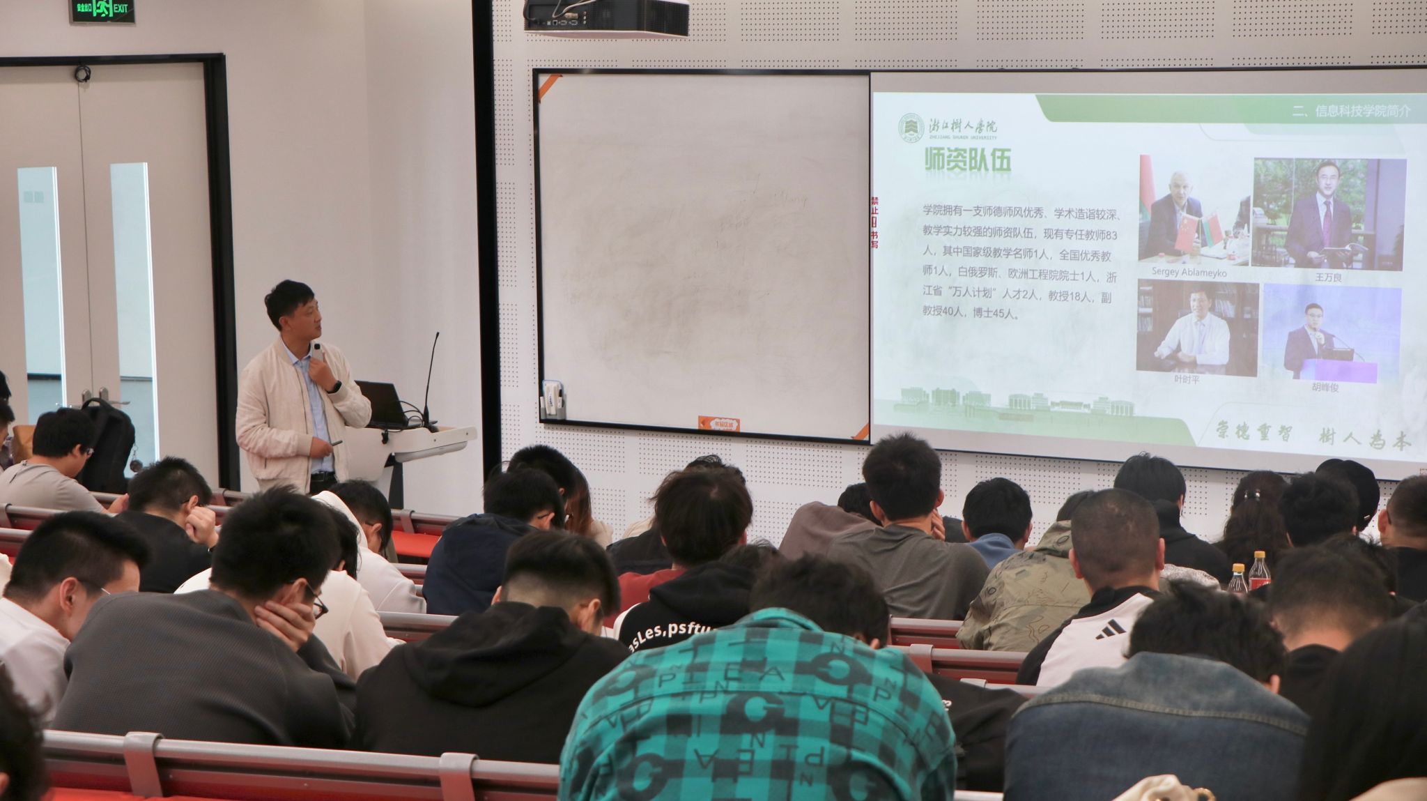 为拓宽研究生招生渠道、吸引优质生源,近日,信息科技学院副院长戴国勇携屠杭垚博士一行,赴宁波财经学院数字技术与工程学院开展研究生招生专场宣讲会。宁波财经学院数字技术与工程学院给予大力支持,近 150 名来自计算机科学与技术、人工智能、数字媒体技术、软件工程等专业的大三、大四学生到场参会,现场交流氛围浓厚。