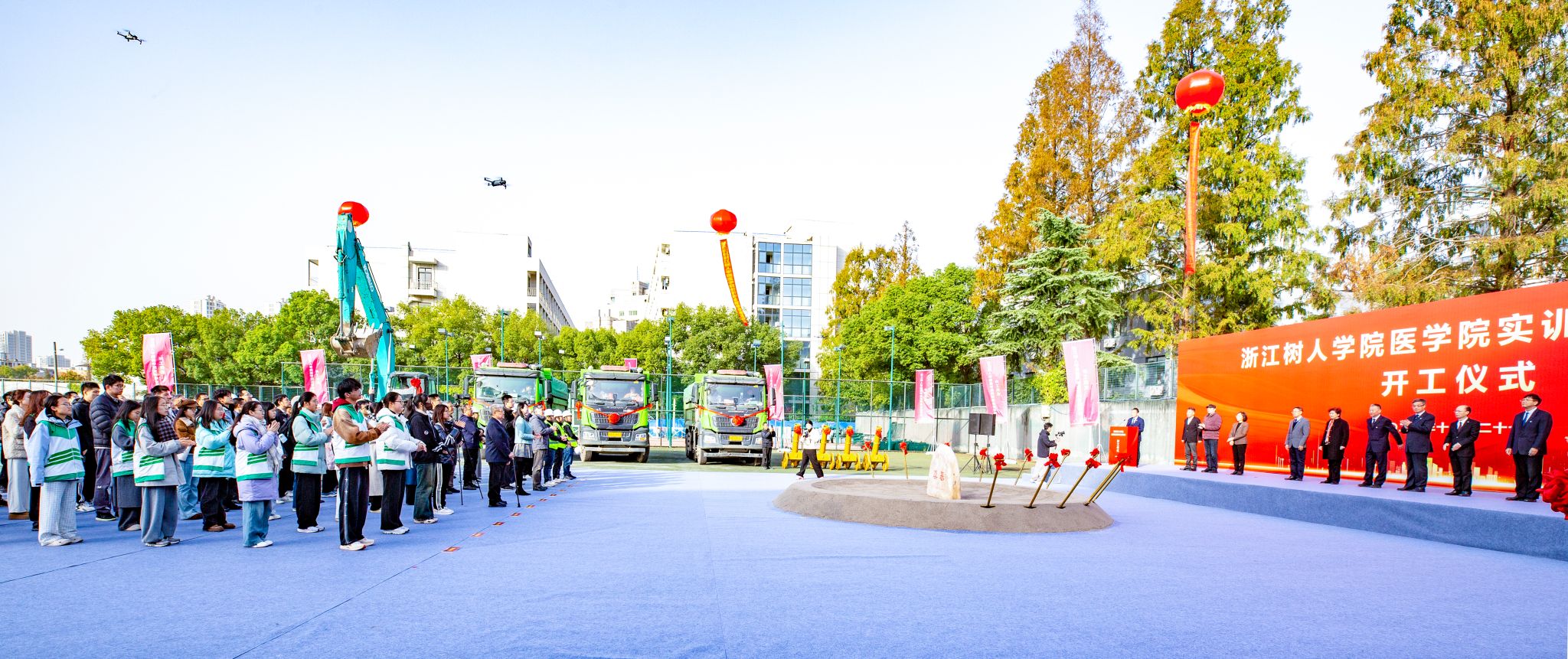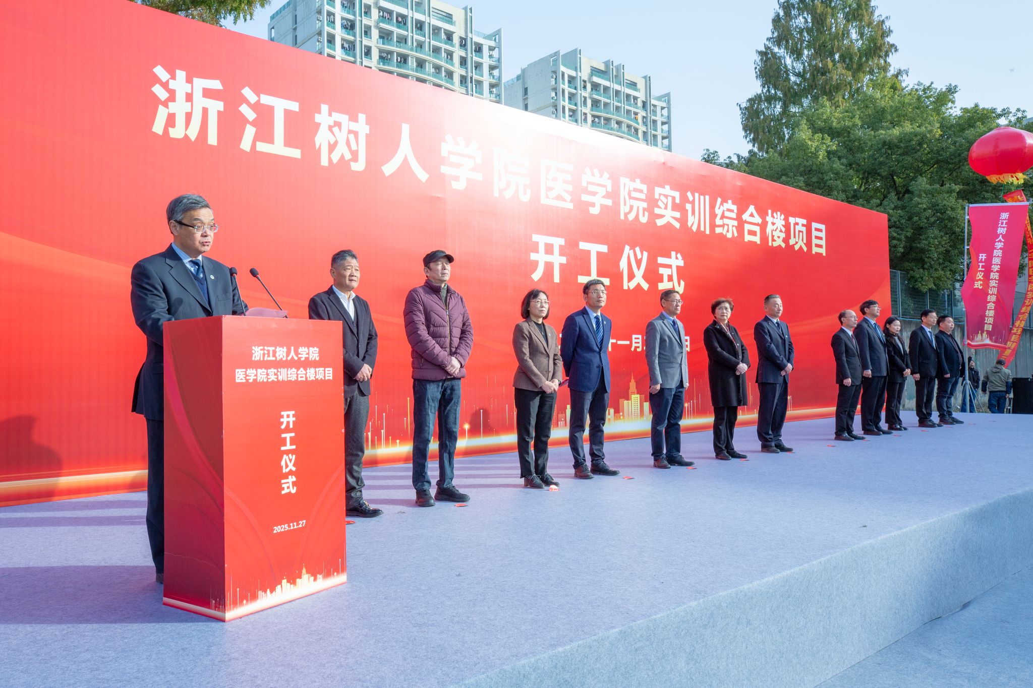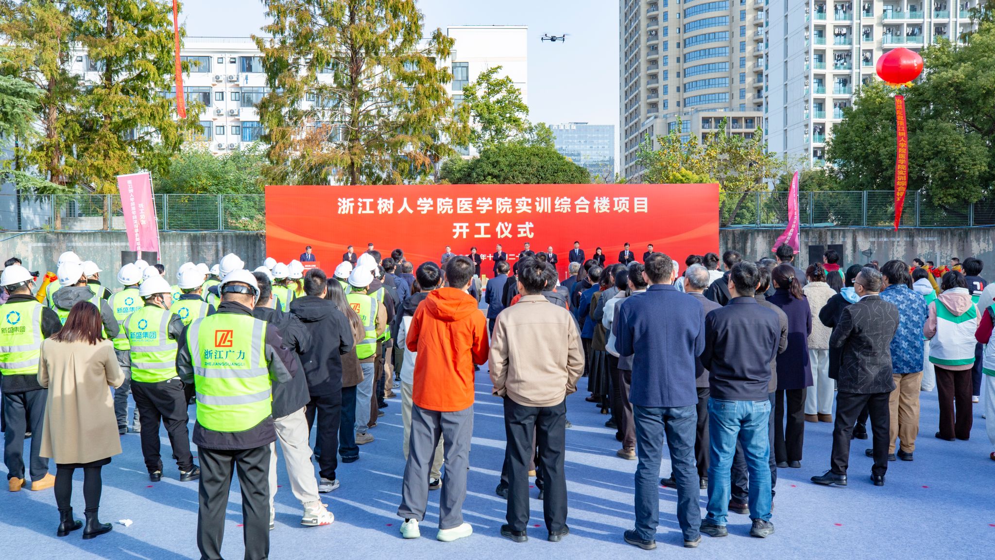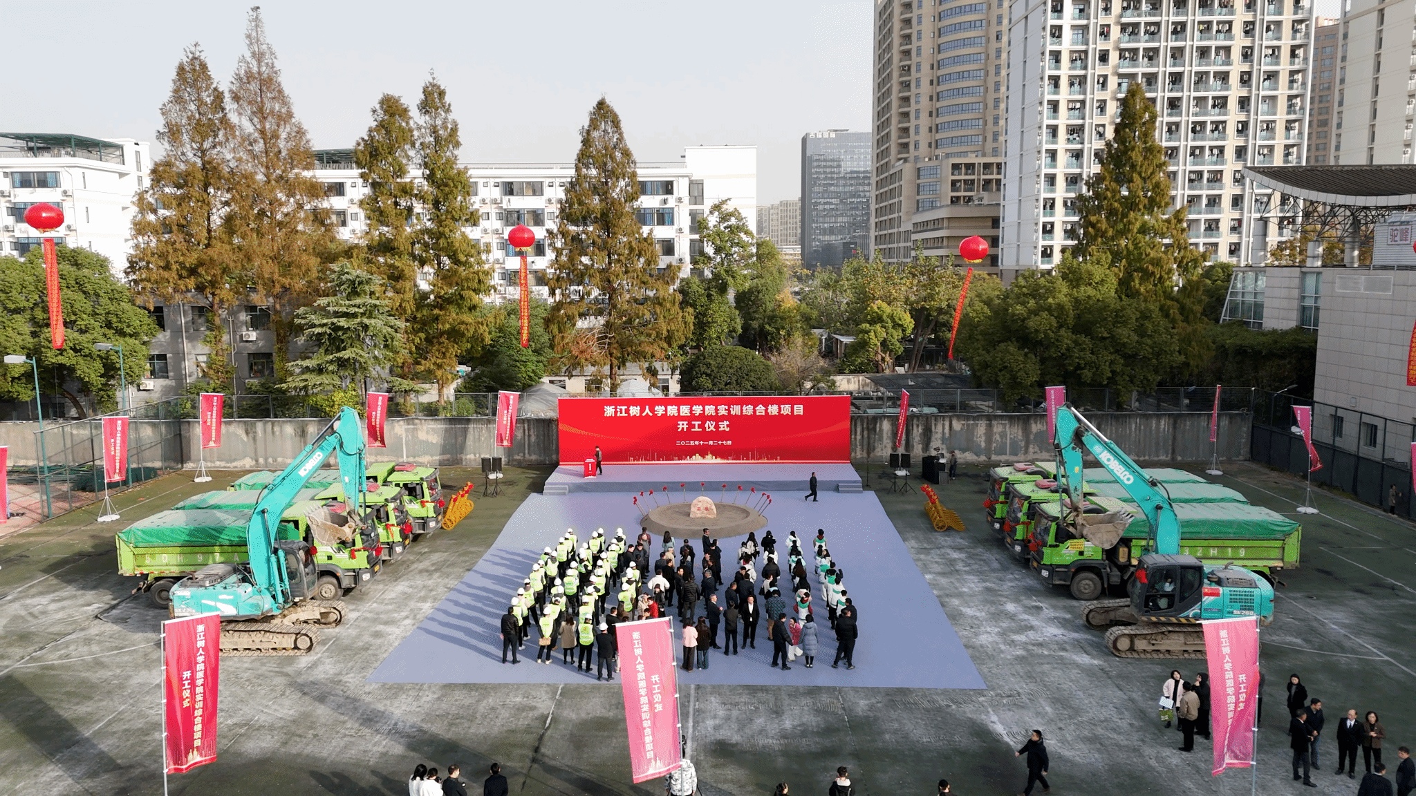 初冬暖阳,蓄势待新。11月27日上午,拱宸桥校区北校区内气氛庄重而热烈,永利官网“一校一策”重点建设项目——医学院实训综合楼工程开工仪式在项目现场举行。学校党政领导班子成员,相关职能部门与学院负责人,师生代表以及设计、施工、监理、勘察、造价咨询等单位代表共同出席,见证这一具有里程碑意义的时刻。仪式由副校长陈浚主持。