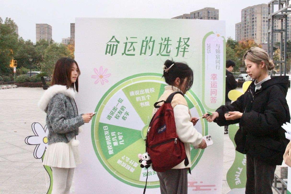 负责该环节的锦宸校友会社长赵灵俪表示,设计问答转盘的初衷,就是考察同学们对于学校的了解程度以及加深大家对学校的校史了解,增强同学们与学校之间的情感链接。“我们还考虑到不同年级的储备差异,因此所设计的题目都有难度层级。为了照顾新生,我们还在转盘上设计了一个‘大冒险’板块,从而降低闯关难度。但从现场情况来看,我们发现其实很多同学都熟知学校的内容,大家参与热情特别高。”