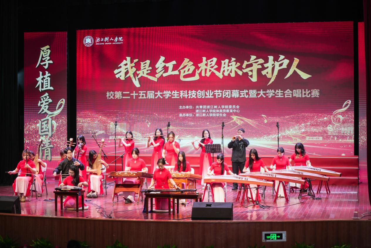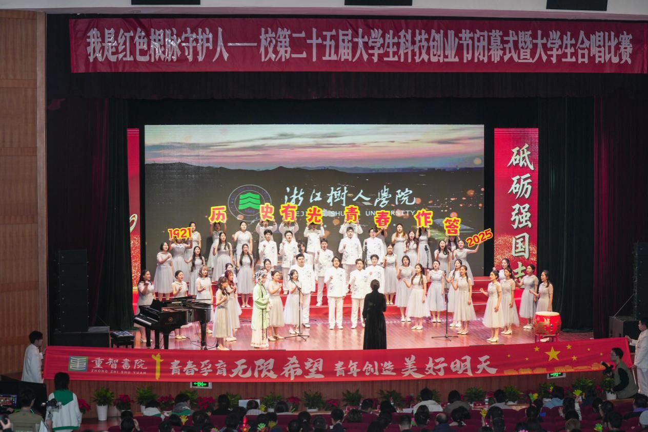 为教育引导广大树人青年赓续红色根脉、厚植家国情怀、勇担时代使命,12月9日,学校第二十五届大学生科技创业节闭幕式暨大学生合唱比赛在拱宸桥校区树人礼堂如期举行。本次活动由校团委、校体美劳教育中心主办,校学生会承办。校党委书记王洪中、副书记王军,校长助理冯淑娟以及相关职能部门、学院、书院负责人等出席本次活动,沉浸式体验“我是红色根脉守护人”的视听盛宴。