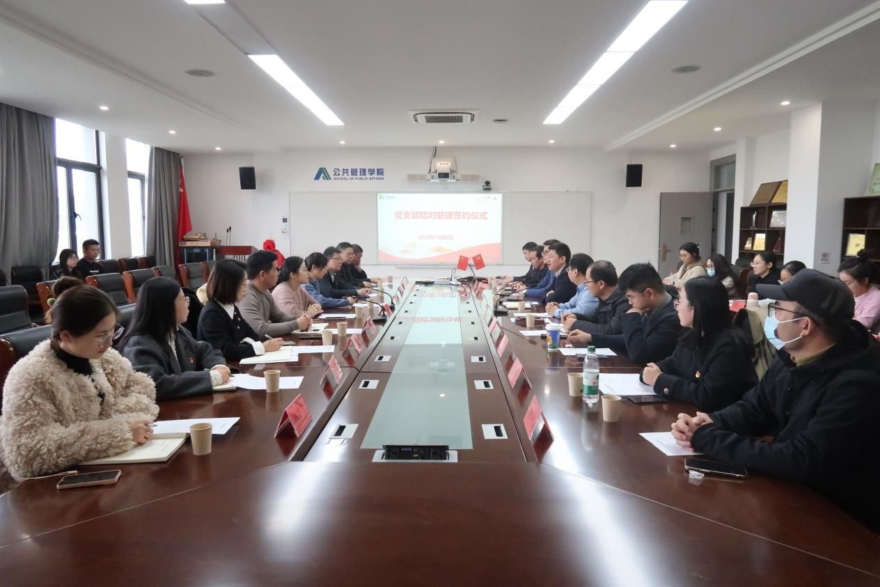 12月5日,公共管理学院第二教工党支部、后勤保障处第三党支部、公共管理学院宸阳书院学生党支部、公共管理学院明哲书院学生党支部与杨汛桥街道紫薇社区党总支、园里湖居委会党支部集体签订党建结对联建协议。杨汛桥街道党工委副书记戴晶莹、党工委委员俞哲雯,公共管理学院党委书记汪群龙、后勤保障处副处长张烨、后勤公司副总经理郑红明、明哲书院直属党支部书记陈安龙,以及各结对联建党支部书记、师生党员代表等25人出席签约仪式。仪式由学院党委副书记、副院长叶智校主持。
