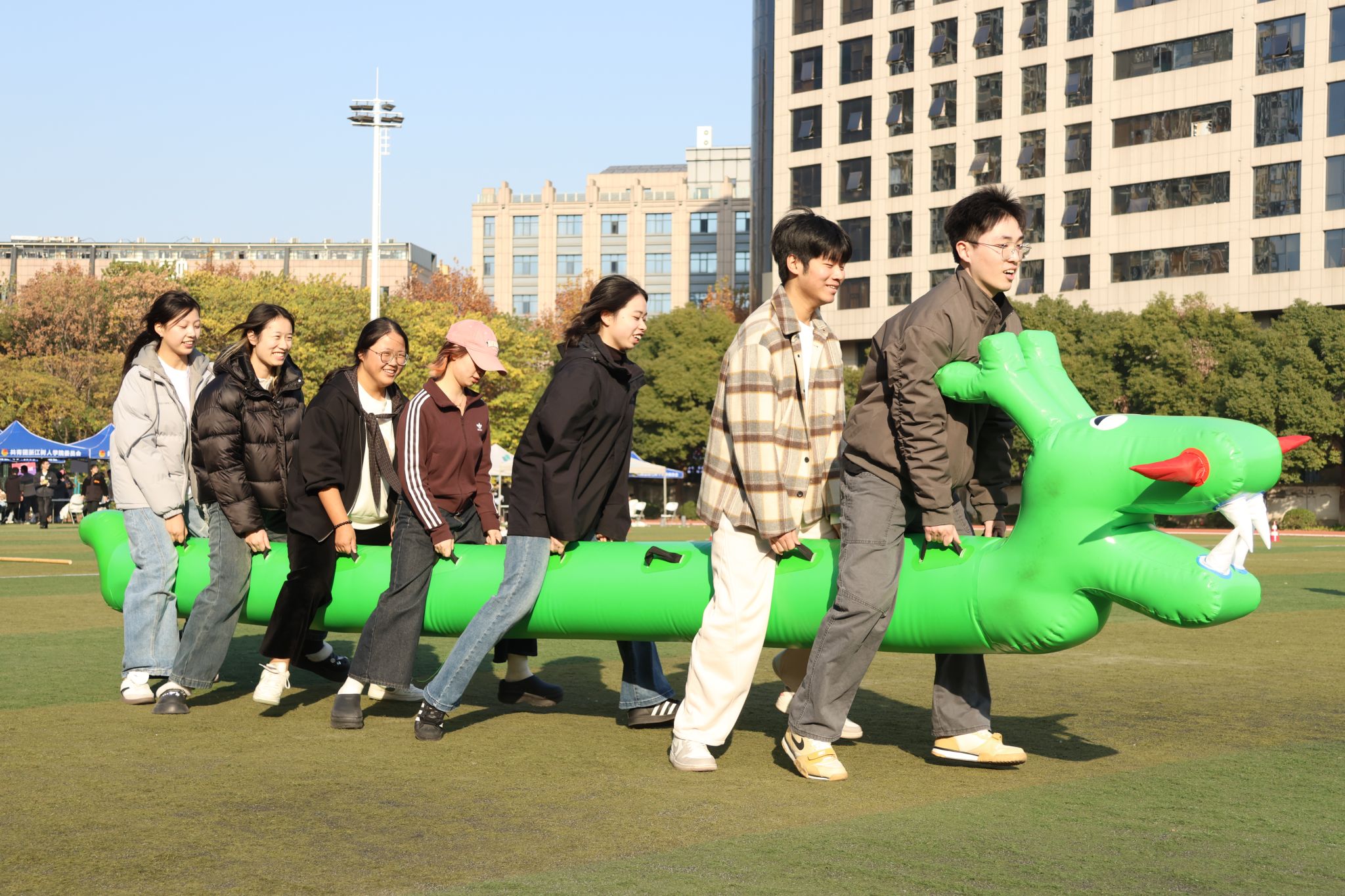 启动仪式当日,现场设置了丰富多彩的趣味体育活动。“大脚板”“旱地龙舟”“同心鼓”“背夹气球”“旋风跑”等项目妙趣横生,笑声与加油声此起彼伏。同学们在轻松愉快的氛围中密切配合,体验运动乐趣,凝聚团队力量。