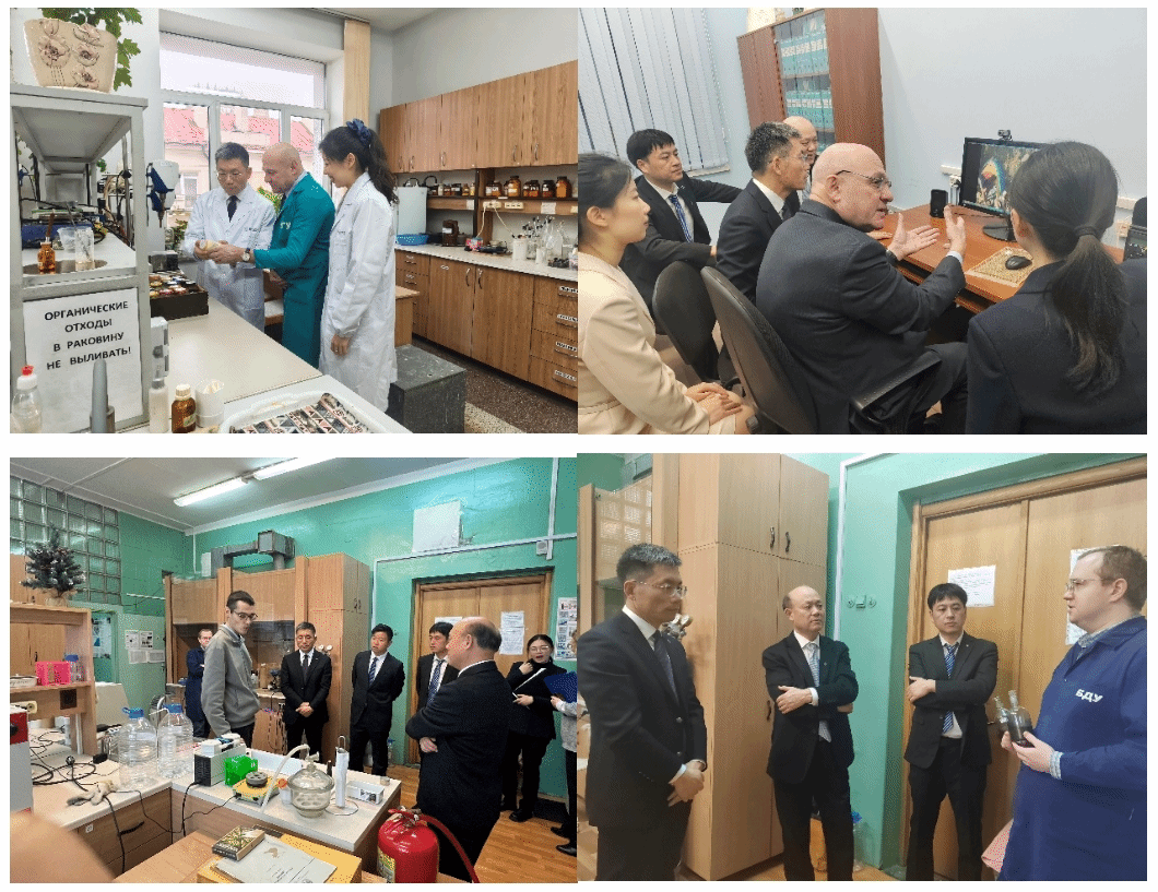 永利官网代表团与白俄罗斯国立大学副校长布洛欣·安德烈·维克托罗维奇进行了深入交流洽谈,并走访了白俄罗斯国立大学化学类实验室与研究中心,详细了解其在优势学科建设、科研创新及人才培养方面的成果与特色。在座谈交流中,双方聚焦中白双边学术会议、高层次人才培养、师生交流等关键领域交换意见,达成一系列合作意向。
