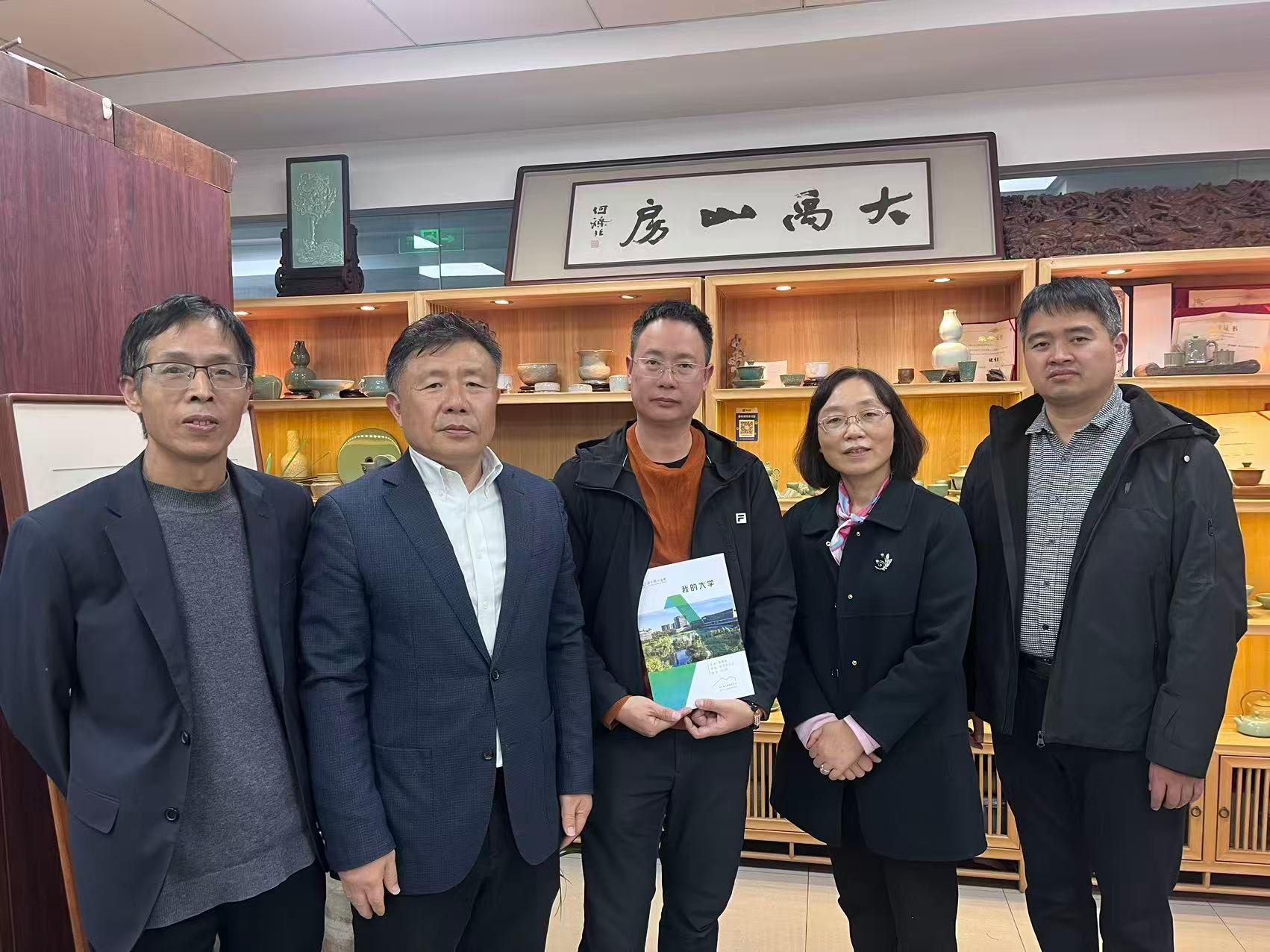 近日,校长助理冯淑娟带领图书馆馆长洪国延、人外学院院长李剑亮等一行专程走访了永利官网优秀校友、2003届视觉传达毕业生黄震喜,走进他那处名为“大禹山房”的文化天地。这并非一次寻常的校友联络,而是一场关于文化传承的深度对话。