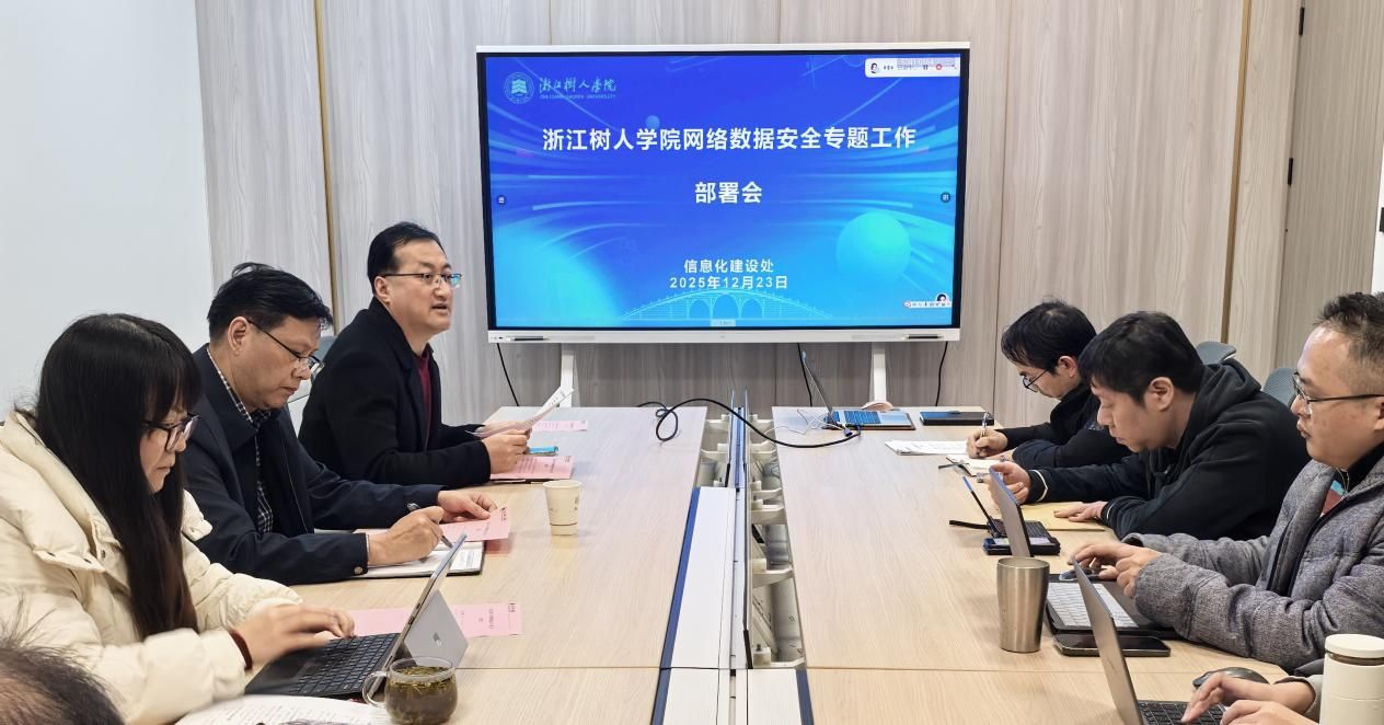 为深入贯彻落实全省教育系统网络数据安全专题会议精神,压紧压实校园网络数据安全责任,全面筑牢校园网络安全防线,12月23 日,永利官网在拱宸桥校区召开网络数据安全专题工作部署会。副校长叶时平出席会议并讲话,信息处全体工作人员参会,信息处副处长(主持工作)张天荣主持。