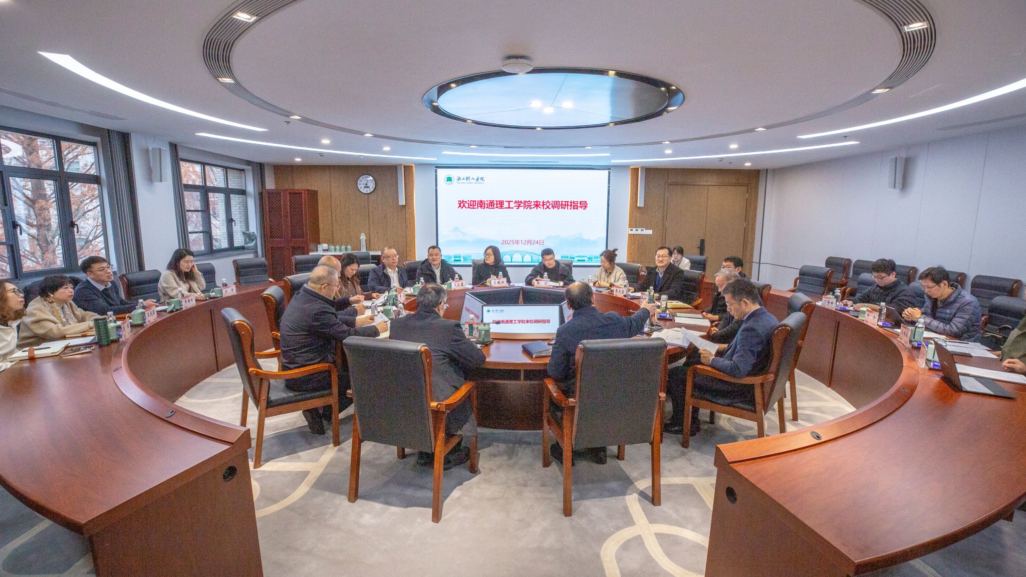 12月24日,南通理工学院副校长顾力平、陈勇、赵怀斋一行12人莅临永利官网拱宸桥校区调研交流,党委副书记王军、副校长陈浚出席座谈交流会,校(党)办、人事处、学工部、科研处、建资处、信息处、后勤处、校团委等部门相关负责人参加座谈。