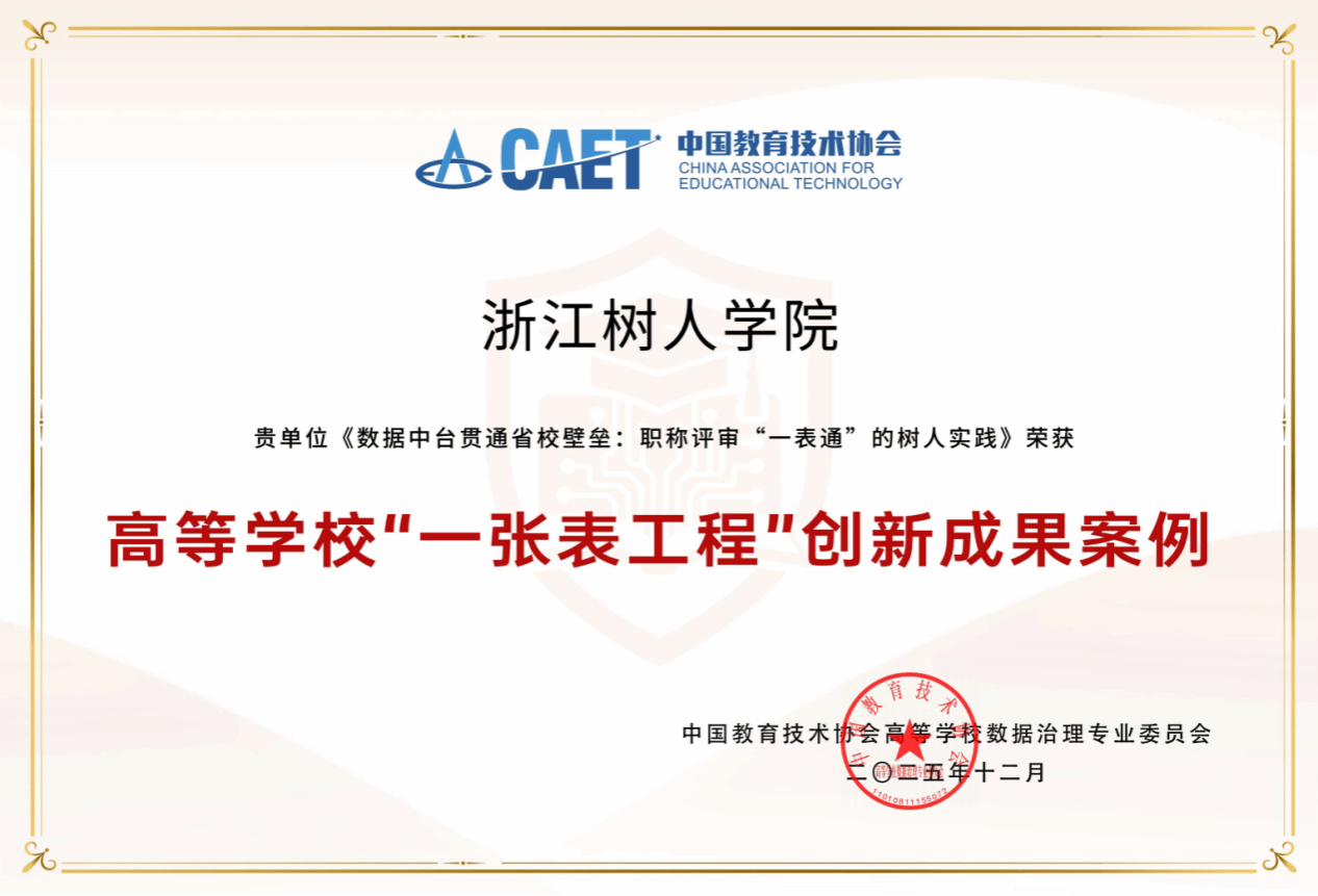 同时与人事处联合申报的“数据中台贯通省校壁垒:职称评审一表通的树人实践”项目荣获中国教育技术协会高等学校数据治理专业委员会高等学校一张表工程创新成果案例。