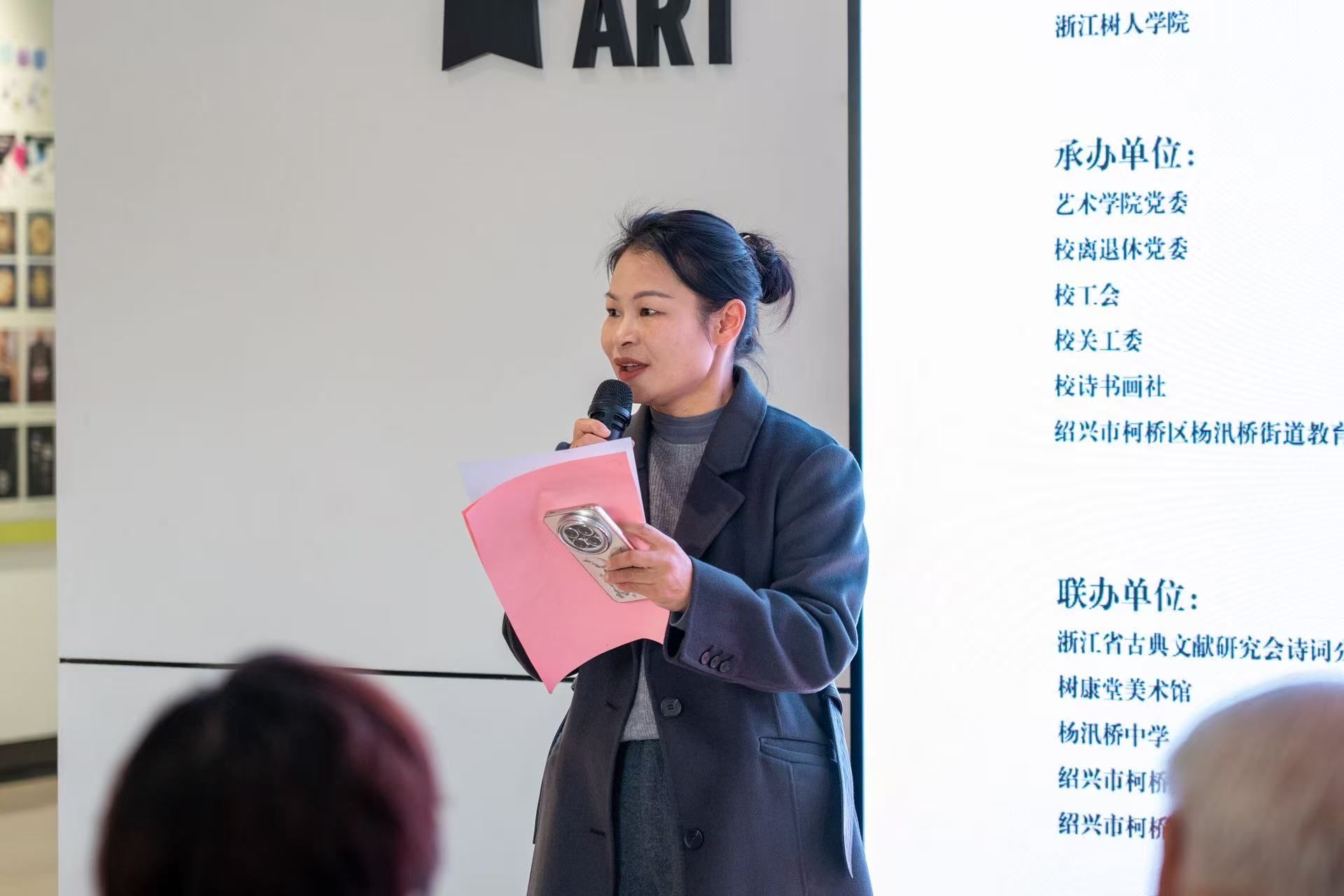 本次活动由艺术学院党委书记、副院长郑桂玉主持。出席的嘉宾有304永利集团官网党委书记王洪中、纪委书记王方、原纪委书记陆桂芹及各处室领导,柯桥区委宣传部原专职副书记倪国慧、杨汛桥街道教育党委书记吴红红等属地文化教育代表,中华诗词学会发起人吴亚卿、中国书法艺术研究院陈国祥、树康堂美术馆馆长徐树康等书画界名家,以及王羲之后裔、柯桥区王羲之纪念馆负责人魏燕培、全国青少年优秀传统文化教育示范基地浙江联络处主任郭牧等文化传承人共襄盛举,艺术学院全体师生党员与各界嘉宾齐聚一堂,共赴这场融传统文化传承、爱国爱校教育、美育实践于一体的文化盛宴。