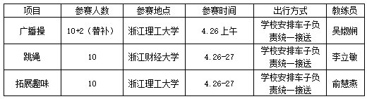 本次比赛永利官网共参加广播操、趣味拓展、跳绳三个项目,其中领队1名,教练员3名,运动员32名。