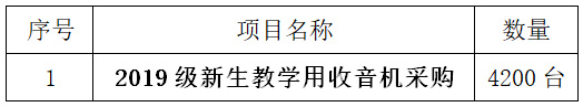 一、项目名称:2019级新生教学用收音机采购