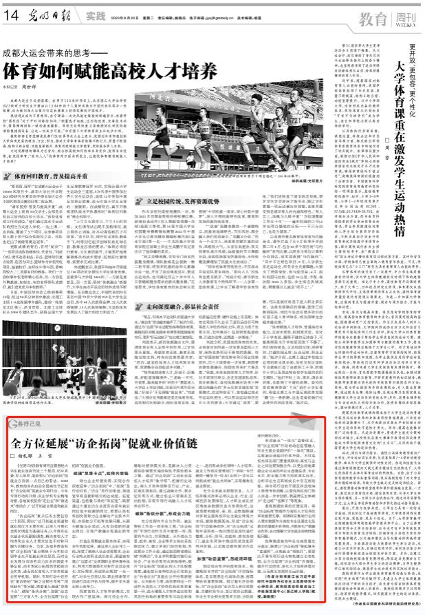8月22日,永利官网党委宣传部常务副部长、教育部高校思想政治工作创新发展中心(304永利集团官网)杨礼雕教授,马克思主义学院副院长王雪副教授在光明日报刊发理论文章《全方位延展“访企拓岗”促就业价值链》。