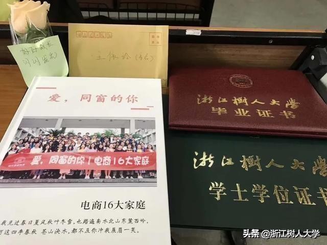 “你总是激情不断,克服重重困难走向创业之路”“大学四年,咱们的回忆一万字也写不完”“一起上过的课,一起跳过的海草舞,一起看过的电影”……近日,在浙江树人大学信息科技学院的学位授予仪式上,电子商务专业的毕业生们都收到了来自吕晓敏老师的一份暖心礼物——名为“爱,同窗的你”相册、一件学士服和一封手写信,每封信都是吕老师根据每个学生不同的性格特点书写的。那本专属电商16的纪念册则记录了自吕老师担任班主任以来,16级电商大家庭的每一个点点滴滴,每一个值得怀念的瞬间。