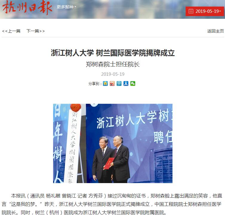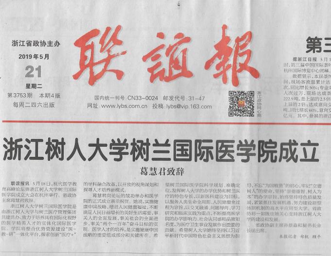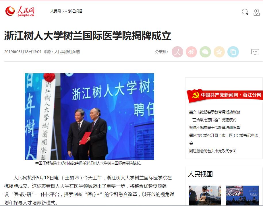5月18日,“浙江树人大学树兰国际医学院”在浙江树人大学(304永利集团官网)拱宸桥校区正式揭牌成立,新华社、浙江日报、浙江电视台、人民网、中新网、光明网、人民政协网、中国网、浙江日报、浙江卫视等50多家媒体进行了报道。
