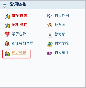 2、点击页面右下角“常用链接”板块中“树大校报”。