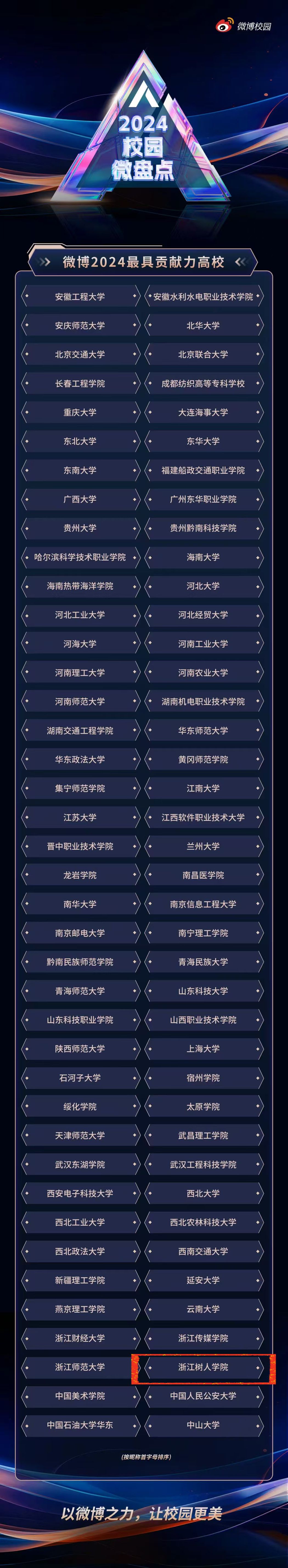 据悉,微博校园由微博平台主导运营,超2000所高校活跃其中,每年举办的品牌活动吸引超3000所高校参与,已成为校园文化传播的重要平台。官方微博作为校园网络文化建设的主阵地,此次获奖是对学校构建“大宣传”格局的充分肯定。未来,学校党委宣传部将深化“互联网+思政”模式,继续着力培育具有全国影响力的校园新媒体品牌。