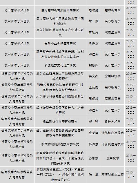 2011年,省哲学社会科学重点研究基地“浙江省现代服务业与经济转型重点研究基地”挂牌运行。省重点学科(A)——国际经济与贸易和高等教育学顺利通过专家组验收;高等教育学入选浙江省社会科学“学科共建”共建学科。与常州大学正式签订联合培养研究生协议。