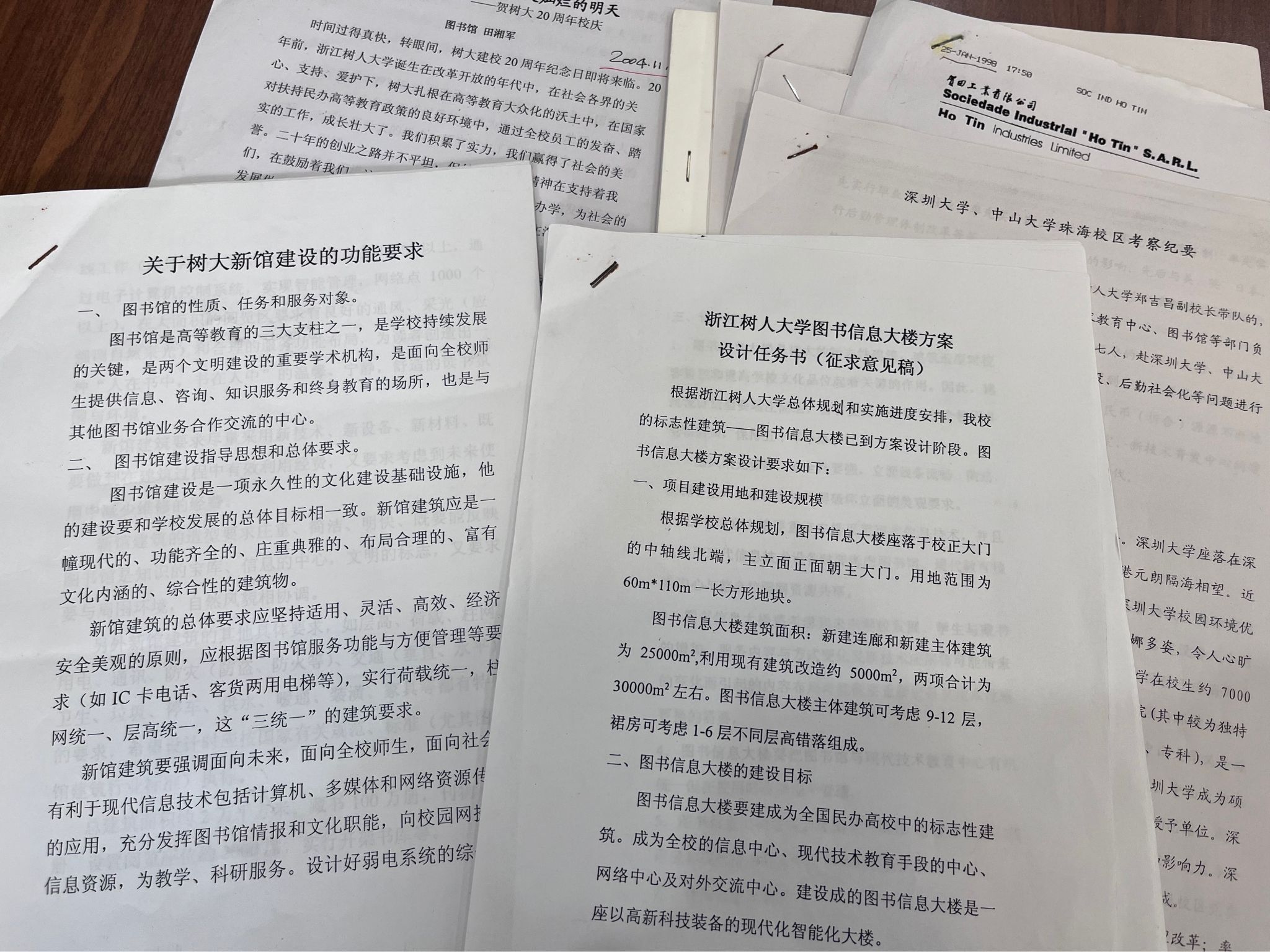 图书馆第一任馆长田湘军老师和图书馆党员们、图书馆新来的年轻人们齐聚一堂忆往昔、话初心、谋发展。田老师拿出自己珍藏的一件件“宝贝”,那一份份建馆初期的文件、省政协等领导来参观捐助的老照片、杭州馆建设的各个设计稿……深情回忆了建校初期图书馆从一间小教室,几百册图书开始的毫末之木,累积成如今参天大树的艰难岁月。
