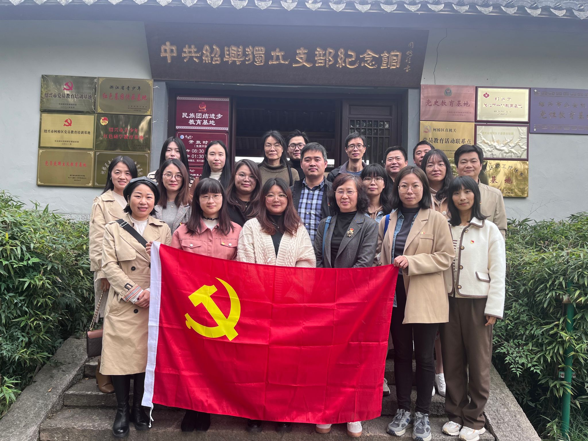 11月25日图书馆直属支部以入党初心为引领,高擎深学细悟二十大精神的旗帜,集体红色教育基地中共绍兴独立支部纪念馆开展主题党日活动。