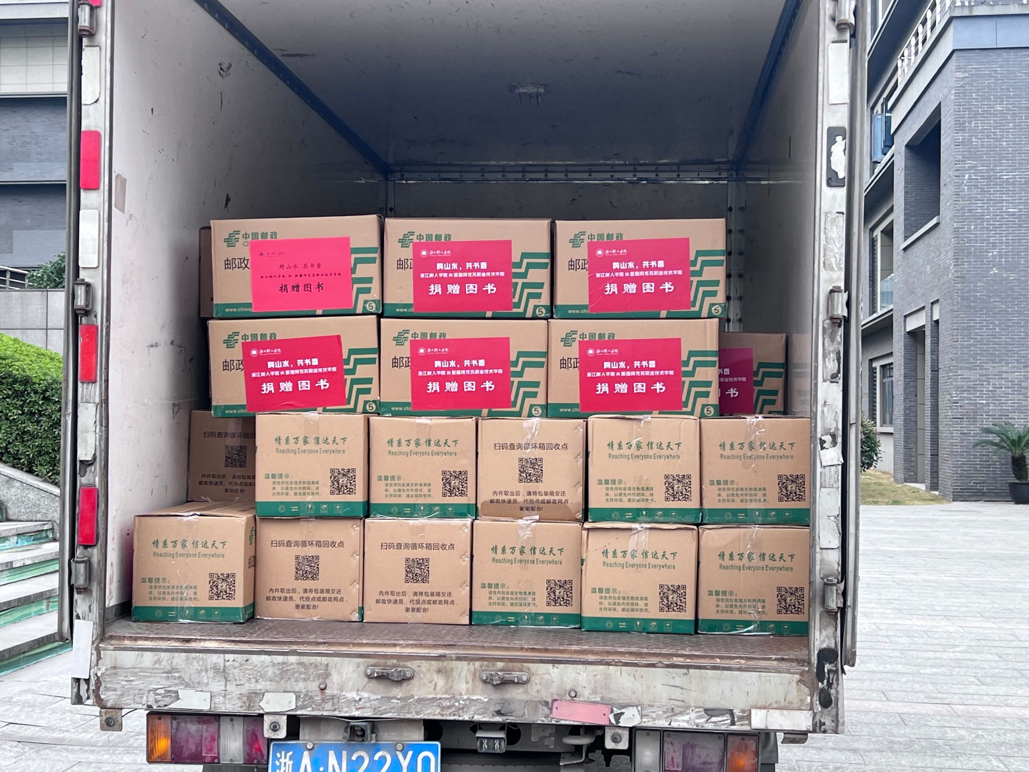 车轮飞驰,爱心横溢。树人师生们共同捐献的这一车书,宛若一座移动的图书馆,载满智慧,加持期待,穿过城市的喧嚣,越过缥缈的山川,去往新疆阿克苏职业技术学院。