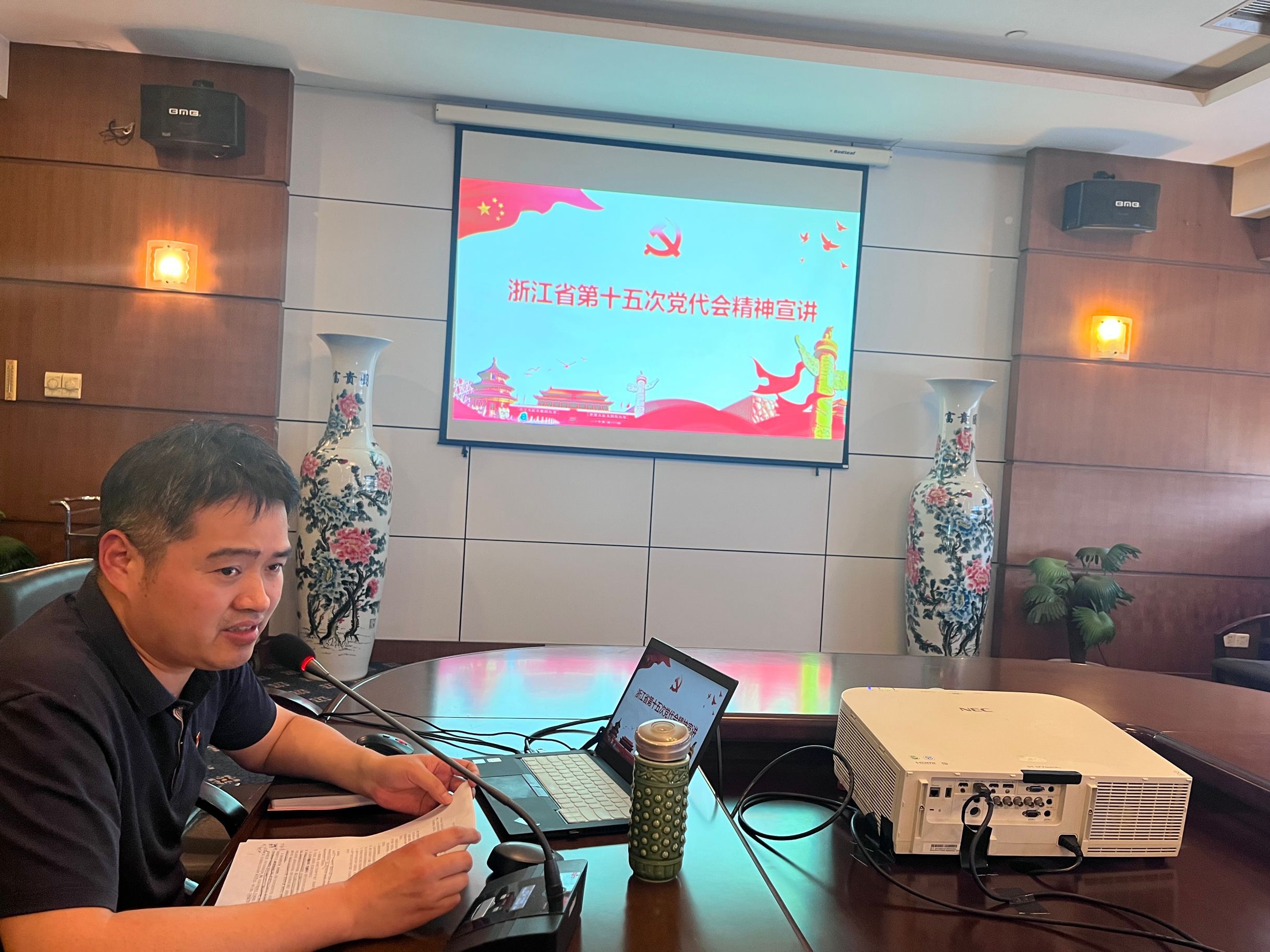 第三个阶段共学一节党课。聚焦浙江省第十五次党代会报告,传达会议纲要,学习会议精神。汤江明对新时代图书馆党员提出“两学”要求,一是“深入学”,对标省第十五次党代会报告原文,深刻把握重大意义,科学体系,丰富内涵;二是“研讨学”,结合工作业务实际,开展学习心得交流,进行思维碰撞,感悟思想精髓。学习成果要体现在增强党性、提高能力、改进作风、推动工作四个方面。
