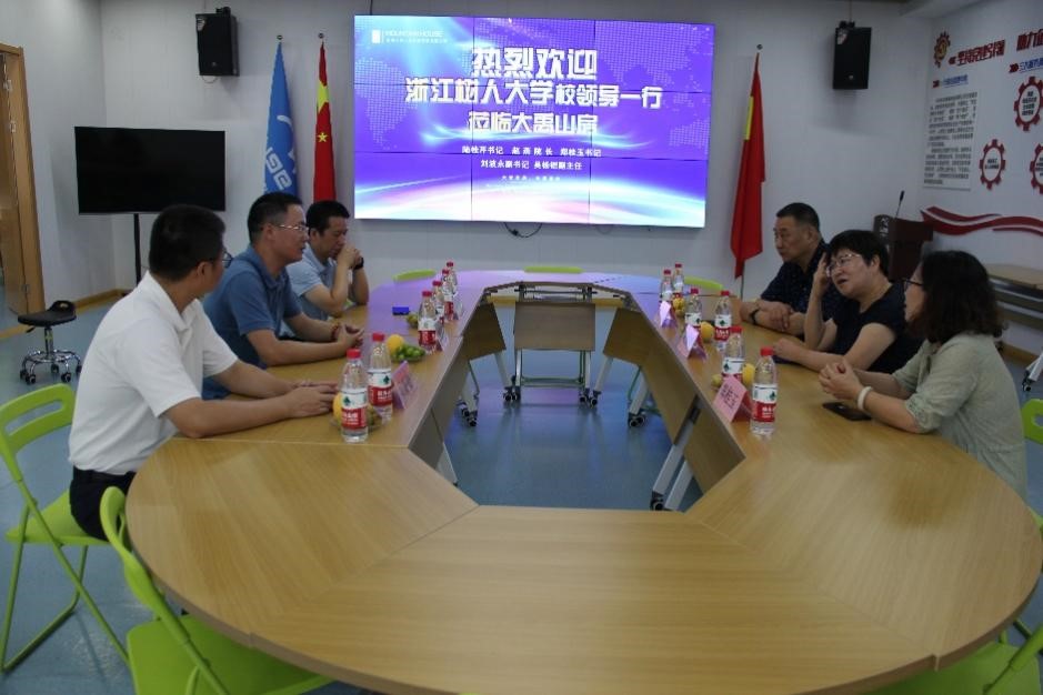 为落实访企拓岗促就业专项行动,进一步加强校企合作,8月5日,校纪委书记陆桂芹带领党办校办、艺术学院相关负责人赴校友企业杭州大禹山房品牌管理有限公司进行走访调研。永利官网2000级艺术学院视觉传达专业校友、杭州大禹山房品牌管理有限公司总经理黄震喜热情地接待了大家。