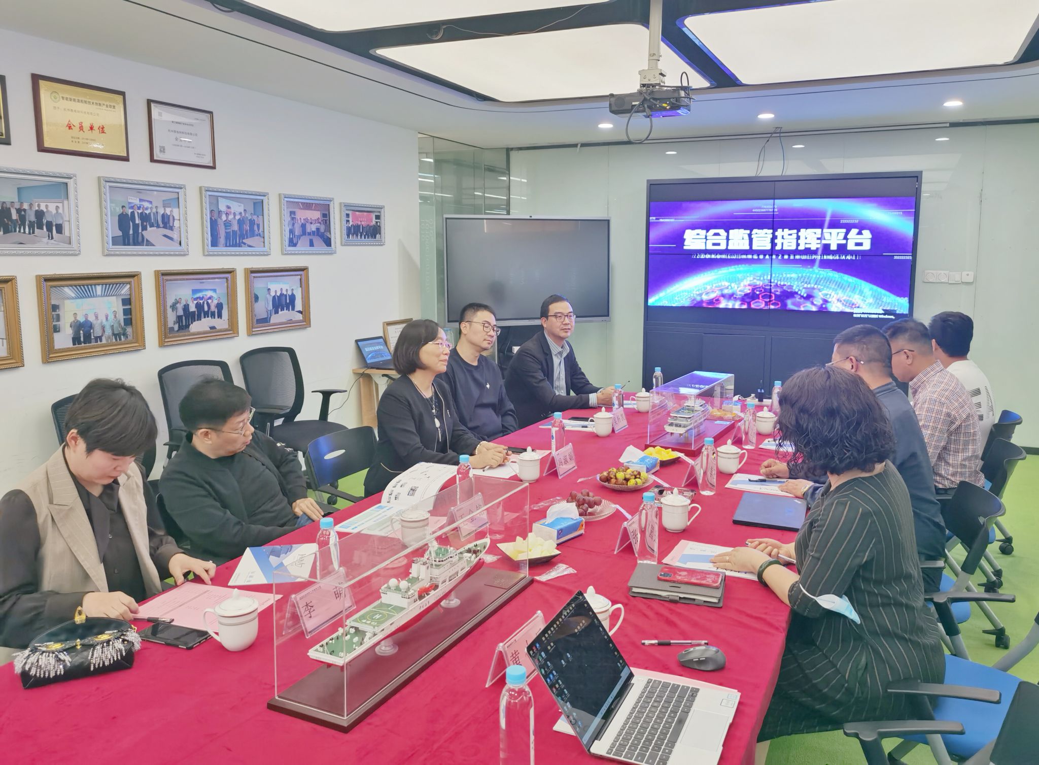 座谈会上,王孝峰首先代表杭州雅格纳科技有限公司对老师们的来访表示热烈欢迎。他介绍了公司目前的发展情况,主营业务涉及智能船岸综合信息化、智慧城市综合管理平台建设方案两大方向,业务范围遍及船舶、公共交通、金融、电力、城市建设等多个行业和领域。目前,智能船岸综合信息化整体解决方案处于行业前列。他希望能借助母校人才储备、科研力量,通过校企合作、学生就业等方式促进双方同向发展。