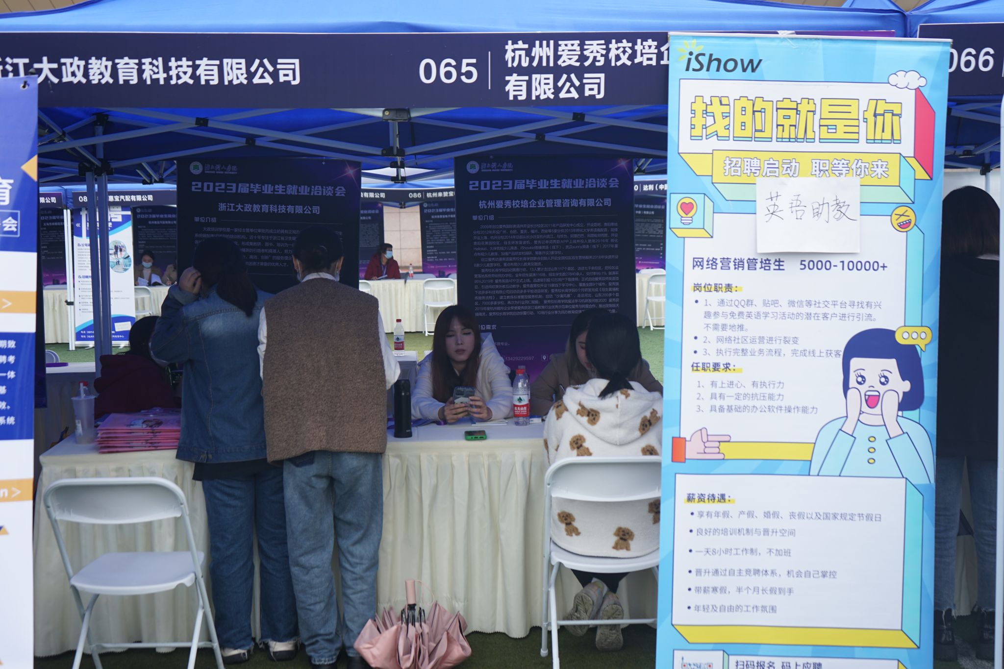 为进一步促进用人单位与毕业生之间的沟通交流,深化校企合作,给毕业生提供更好的就业平台。11月20日,永利官网在拱宸桥校区田径场举办2023届毕业生就业洽谈会。就业洽谈会汇聚省内300余家招聘企业,52家校友企业参加了本次招聘会。