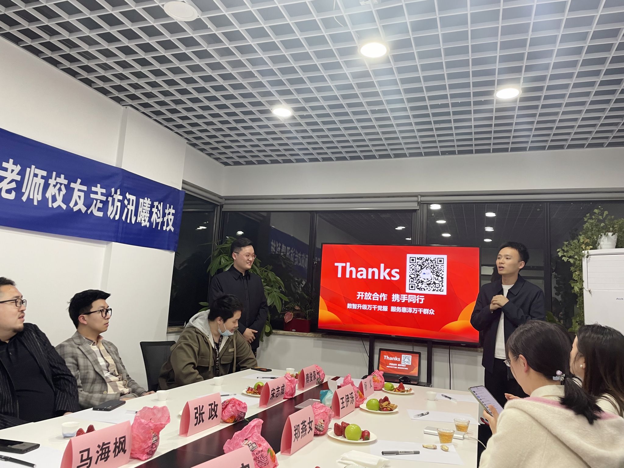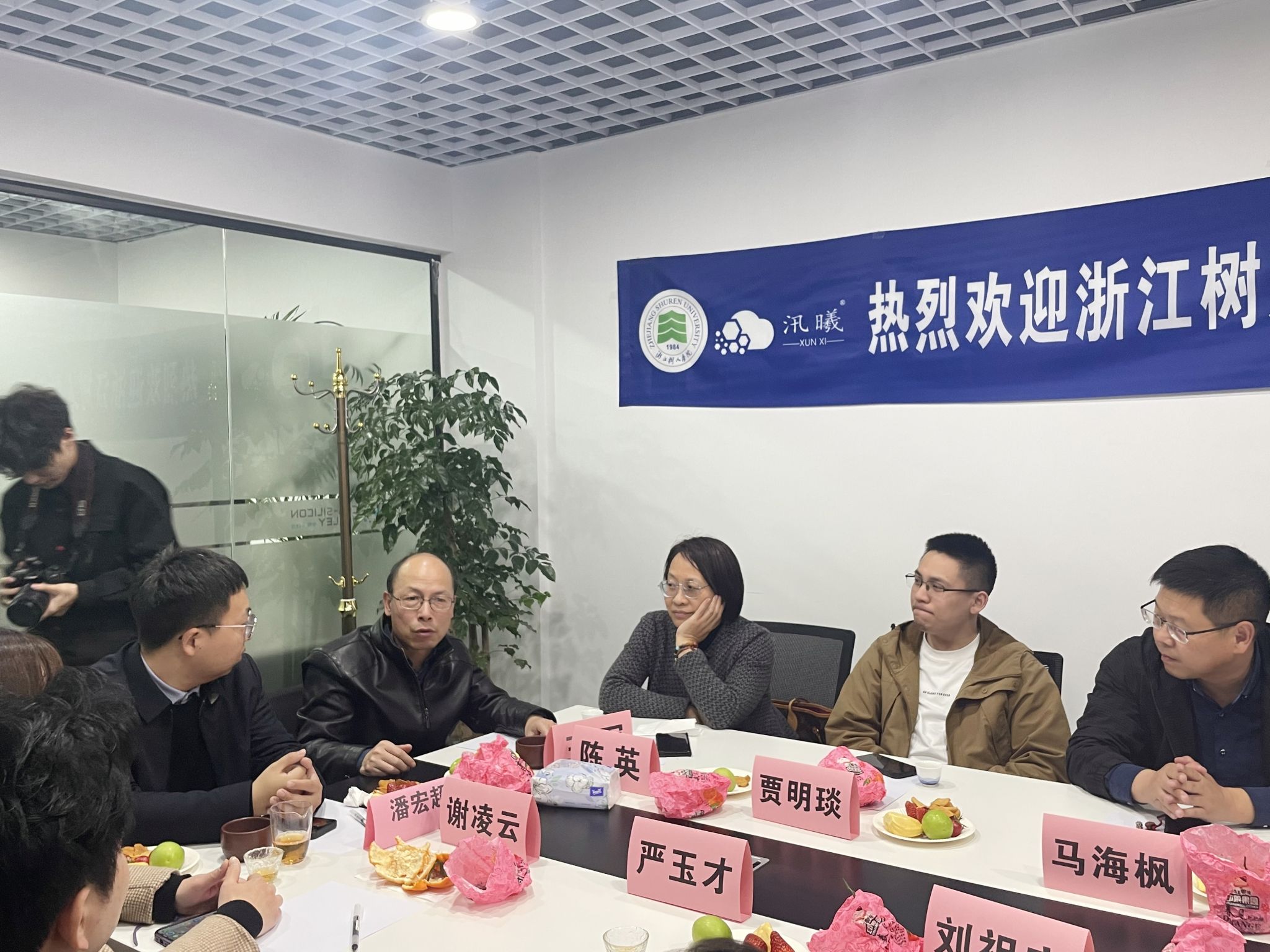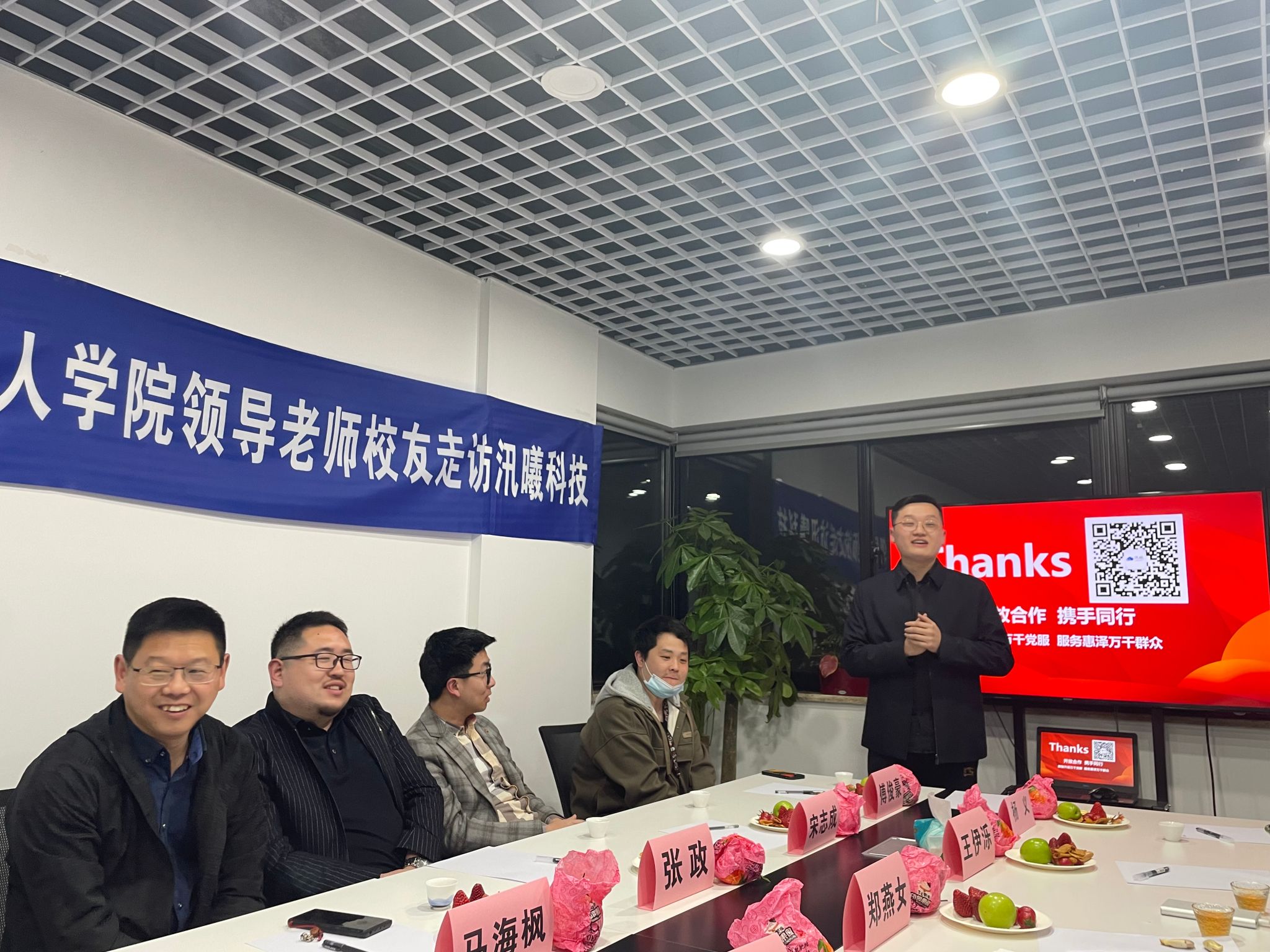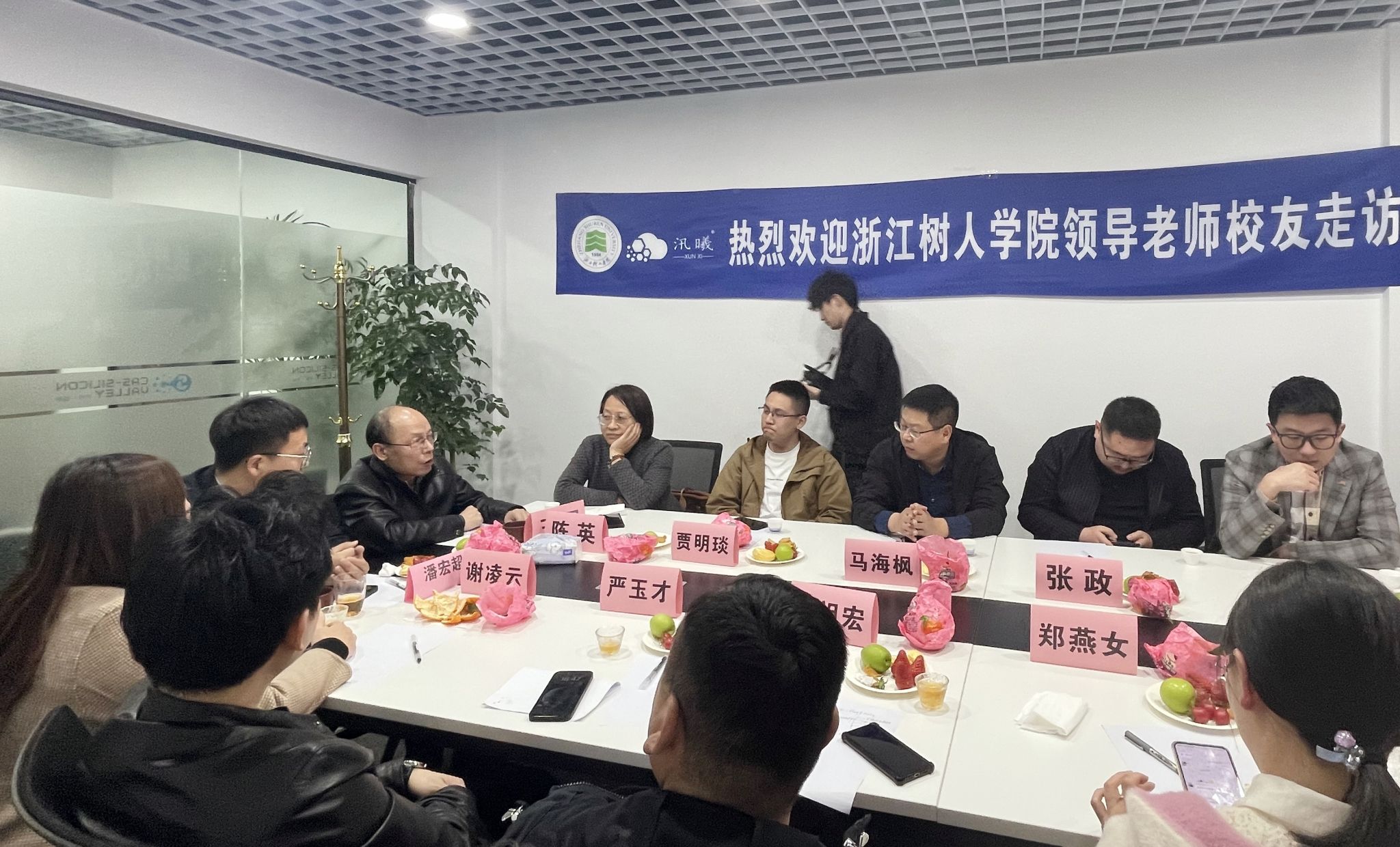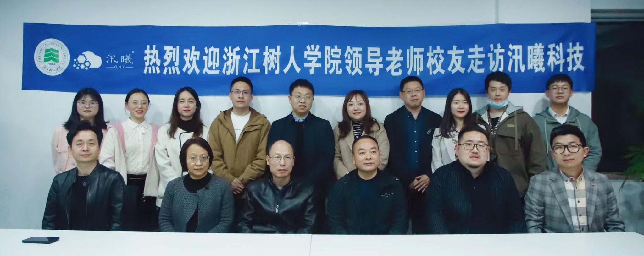 王军对以潘宏超等优秀校友为代表的树人青年勇于创新、敢拼敢闯的创新创业精神给予了高度的肯定,并对汛曦公司“校友接力传承,创业带动就业”的做法表示由衷的赞许。他指出,学校一直以来高度重视校友工作,关心支持校友企业的发展和成长,也希望校友们通过不懈努力,在实现自身价值的同时,为社会、为人民做出更大的贡献,母校会一直陪伴在校友们的身边,作为坚强的后盾,大力支持校友的发展。同时,他也希望广大校友要关心、支持、帮助学弟学妹的成长发展,创造条件,更多吸纳毕业生就业,带动毕业生创业,学校将为校友来校招聘毕业生提供更多的支持。