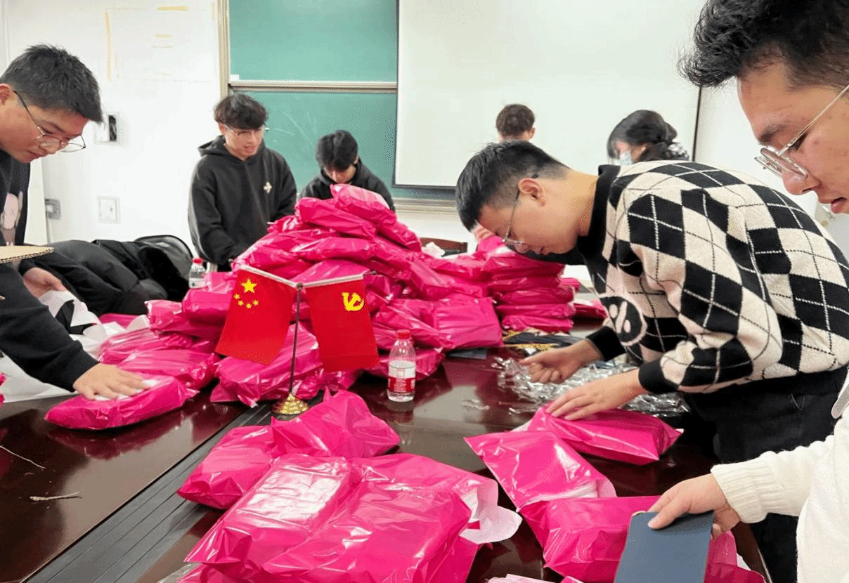 学院于10月份便开始酝酿考虑,想用一种具有纪念意义的形式让新校友感受到母校对刚毕业的他们的牵挂和关心。从新年贺卡设计、制作,学院专属健康包定制,专科毕业照印刷、整理,学院用心筹划着本次活动,学弟学妹们组队包装、贴单,快递小哥仔细扫码入库、发货,将1084份思念跨越百里、千里送到大家手中。