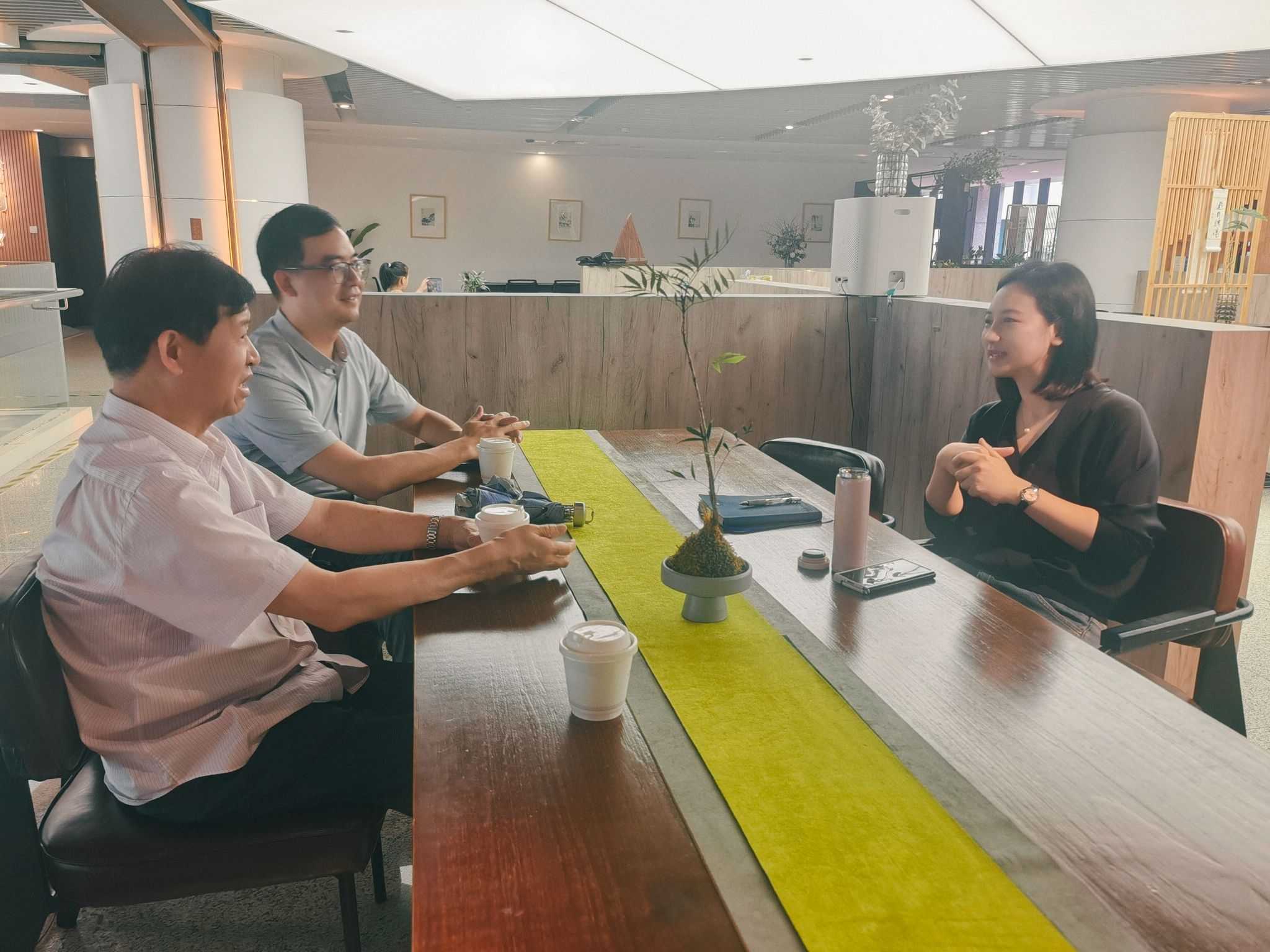 汤潇潇热情接待了徐绪卿一行,汤潇潇与到访的老师们共同回忆了在母校度过的宝贵时光,并表达了对母校教育的深深感激之情。她表示,母校所传授的专业知识为她在当前业务领域的表现提供了坚实的基础。她还分享了自己毕业后在浙江日报的工作经历和成长历程。目前,汤潇潇主要负责潮新闻的政务服务板块和公共服务板块,她采用“新闻+政务商务服务”的创新模式,为党政机关提供全面的新闻融媒服务,将“推动社会进步的力量”有效融入到党政机关的社会治理体系中。