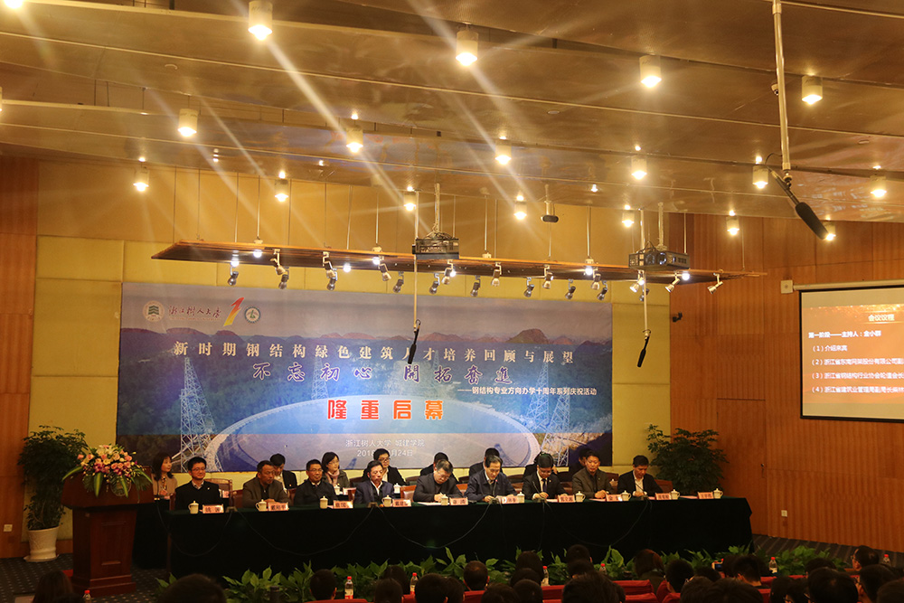 11月24日下午,浙江树人大学拱宸桥校区学术报告厅群贤毕至、少长云集,城建学院土木工程专业钢结构方向办学十周年系列庆祝活动开幕式如期举行。本次活动有幸邀请到了浙江省建筑行业管理局领导、浙江省钢结构行业协会领导、浙江省知名钢结构企业领导等众多钢结构领域的专家和学者出席,城建学院全体领导班子成员、教师代表、校友代表、学生代表齐聚一堂,共襄盛举。浙江树人大学党委书记章清、副校长童国尧应邀出席了开幕式,副校长叶时平出席了第二阶段政校协企人才培养研讨环节。