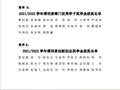 2021-2022学年傅利泉奖学金获奖名单