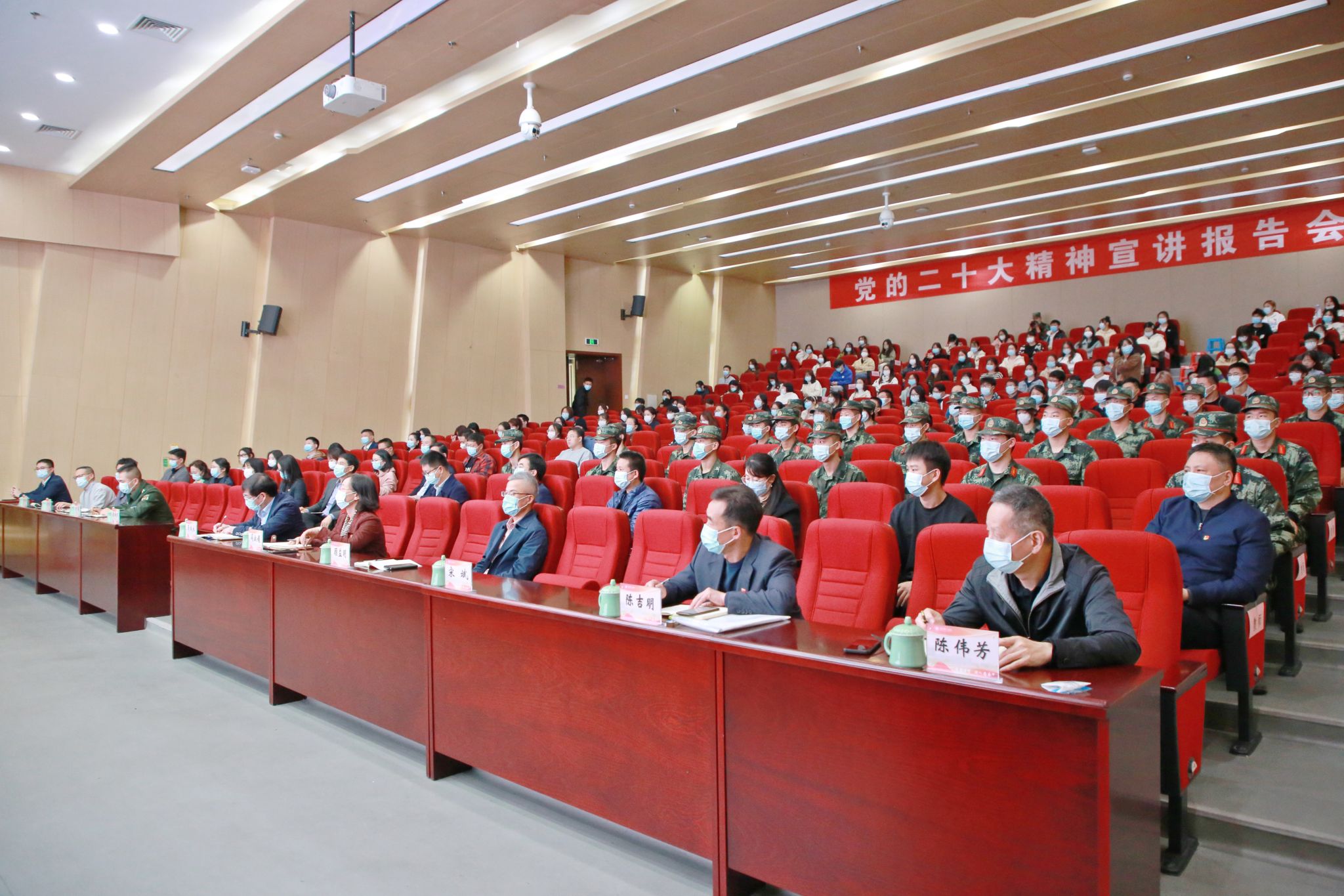 11月15日下午,根据绍兴市委统一部署,绍兴市委宣讲团成员、市委常委、军分区司令员蒋明球来永利官网杨汛桥校区宣讲党的二十大精神。绍兴军分区战备建设处参谋方俊,绍兴市委教育工委专职副书记、教育局党委副书记马成永,绍兴市教育局政治处干部顾益明,副校长陈新民、校长助理冯淑娟、学校相关职能部门、学院(书院)负责同志和师生代表近200人参加。报告会由副校长陈新民主持。