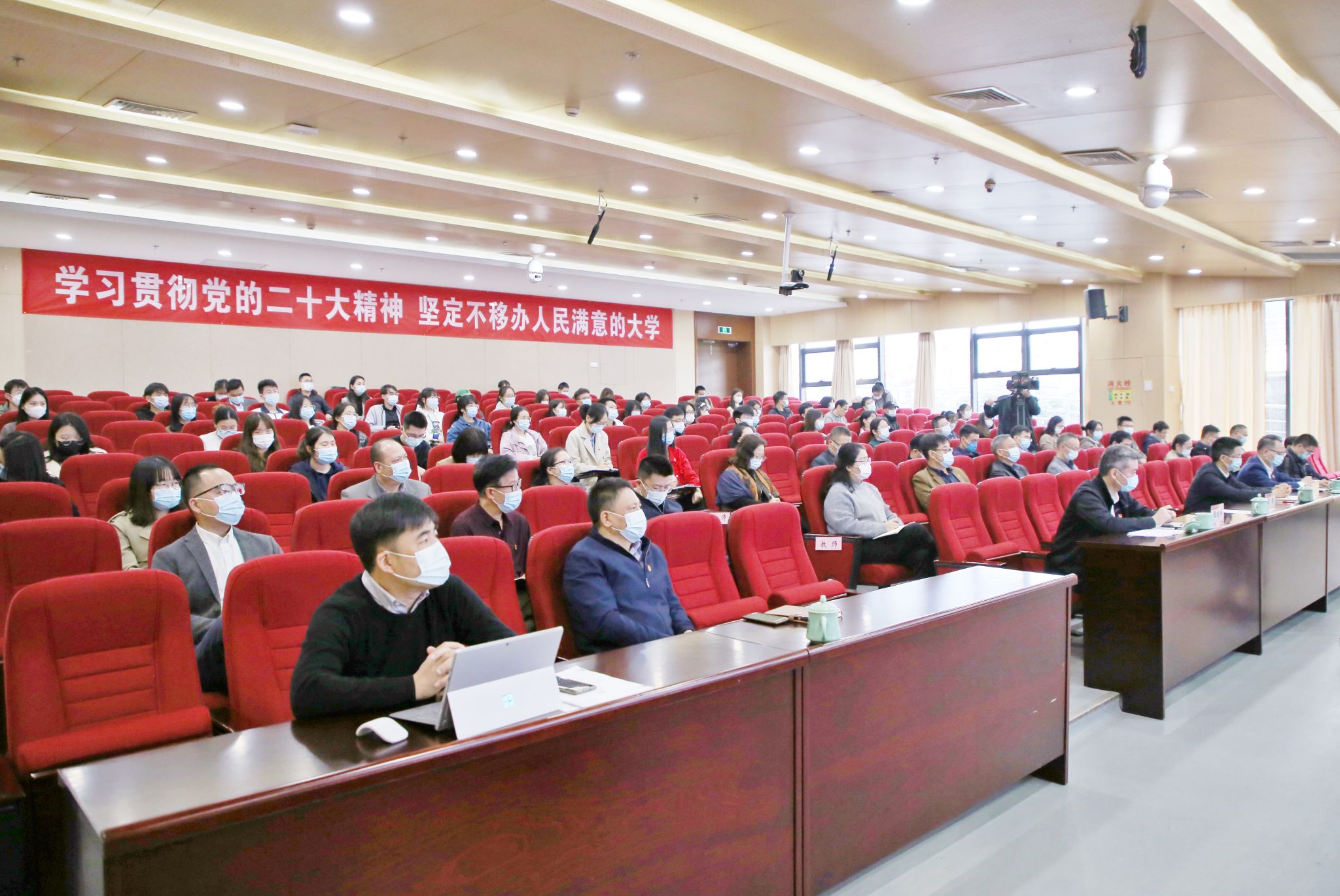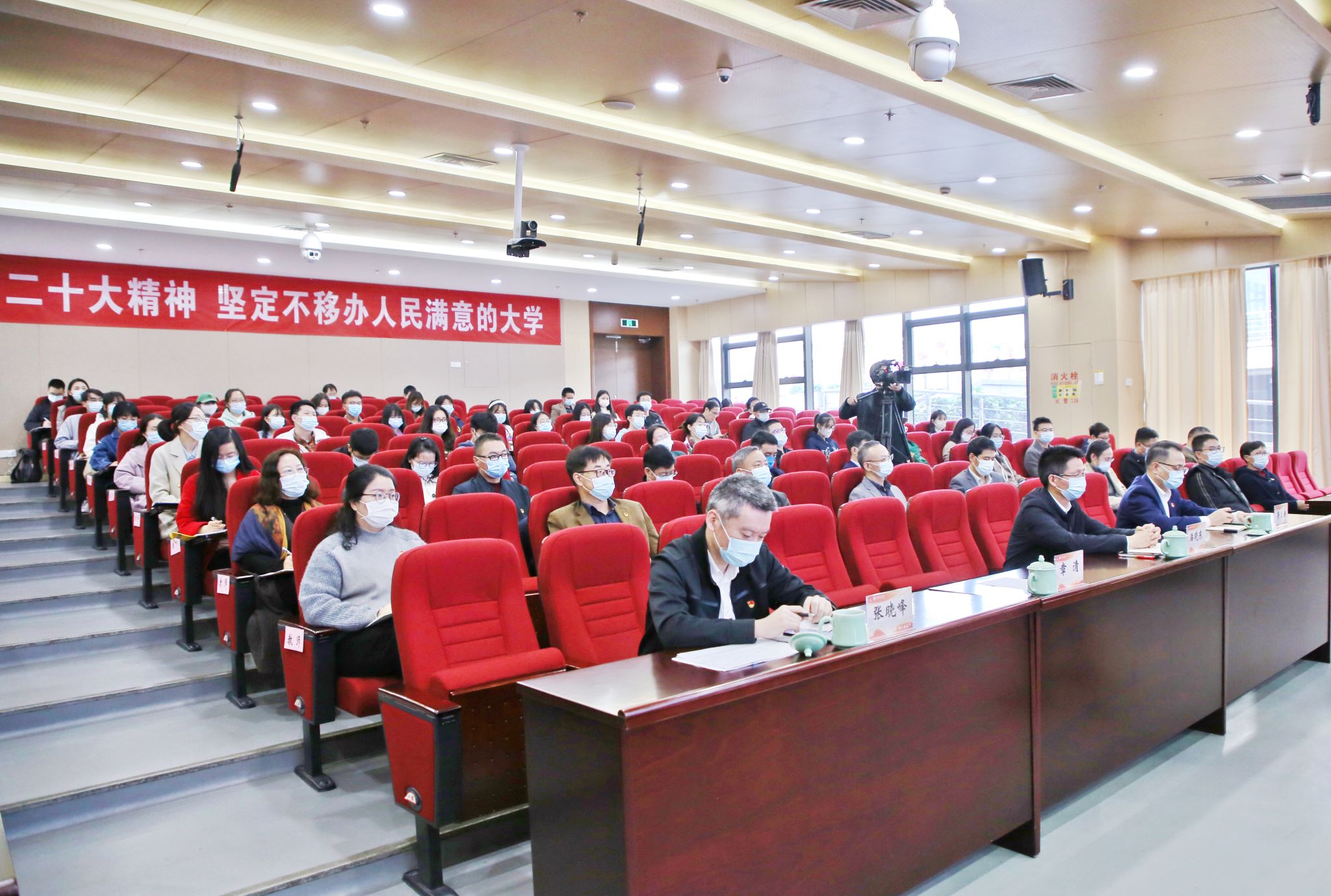 为进一步落实本次宣讲会精神,抓好下一阶段的学习,章清对与会人员提出三点要求:一是要在深刻领会上下功夫,坚定不移沿着习近平总书记指引的方向勇毅前行。要进一步深刻把握党的二十大精神的历史逻辑、理论逻辑、实践逻辑,深刻领会“两个确立”的决定性意义,切实把思想和行动统一到党的二十大精神上来,把智慧和力量凝聚到党的二十大确定的目标任务上来,坚定不移沿着习近平总书记指引的方向奋勇前进。二是要在全面学习上下功夫,坚定不移推动党的二十大精神入脑入心走深走实。全校师生要以更高的政治站位和政治自觉,带着责任学,带着感情学,带着问题学,在学习中深学笃行悟精髓,在工作上善作善成显担当,确保党的二十大精神在学校落地生根、开花结果。三是要在真抓实干上下功夫,坚定不移把党的二十大提出的目标任务落到实处。要以昂扬的精神状态和扎实的工作作风把党的二十大战略部署细化实化为学校申硕攻坚、“名校民办”建设的目标任务和生动实践,扎实开展“五学五坚定争创五个新业绩”学习实践活动,扎实推进学校提质升格、高质量发展,为柯桥打造现代化“国际纺都、杭绍星城”作出新的树人贡献。
