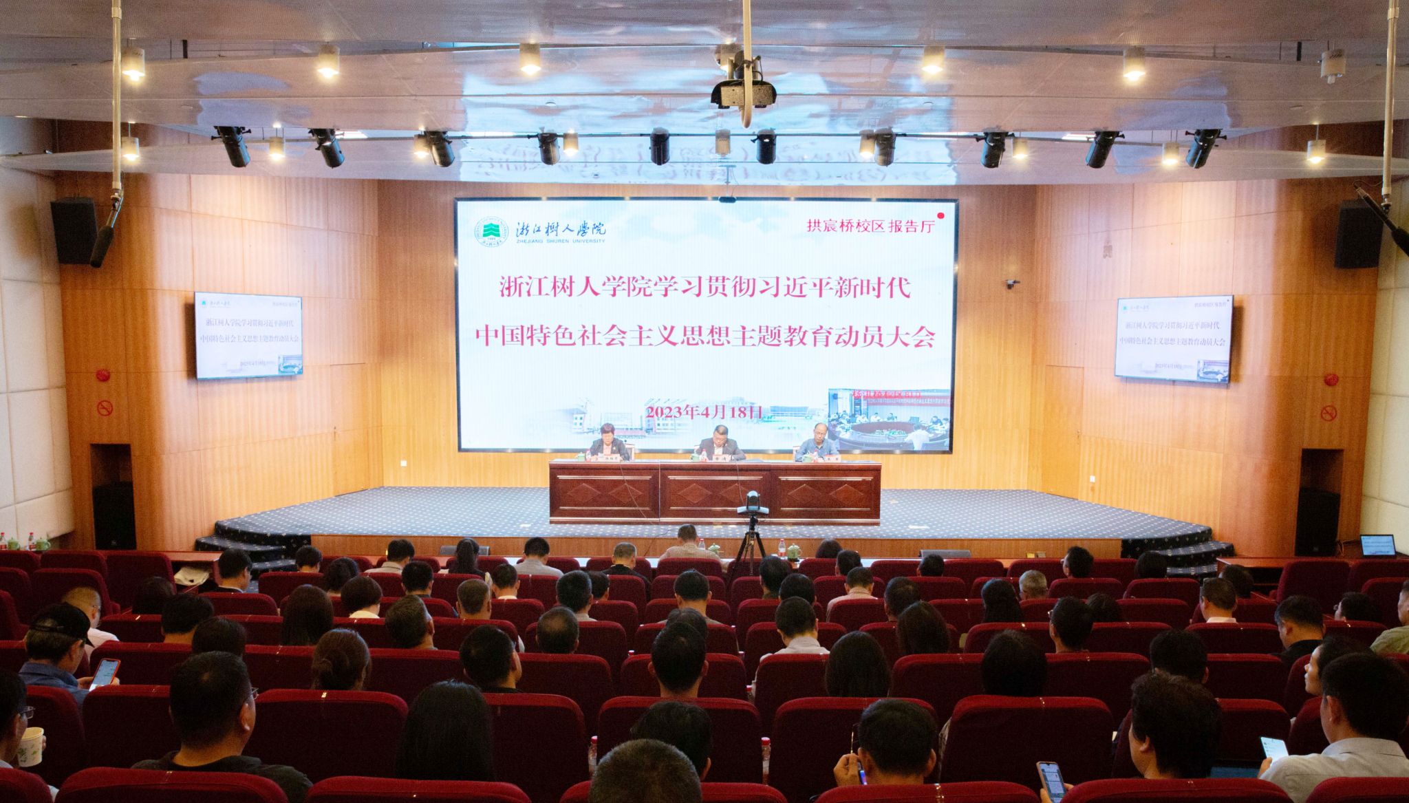 4月18日下午,学校以现场和网络视频相结合的方式在拱宸桥校区和杨汛桥校区召开学习贯彻习近平新时代中国特色社会主义思想主题教育动员大会。校党委书记、主题教育领导小组组长章清主持会议并作动员部署讲话,校领导班子成员出席会议,全体中层干部100余人线下线上参加会议。