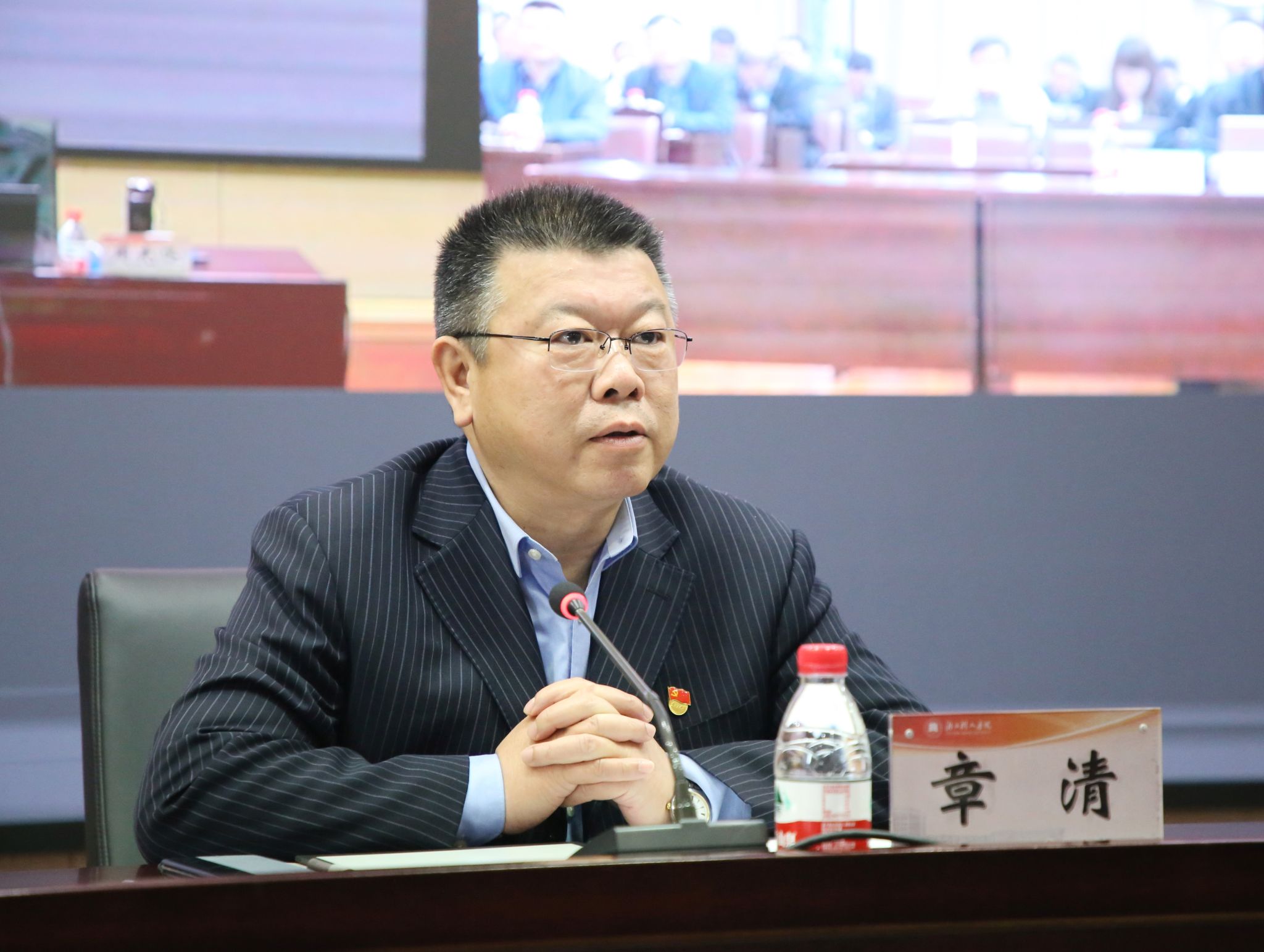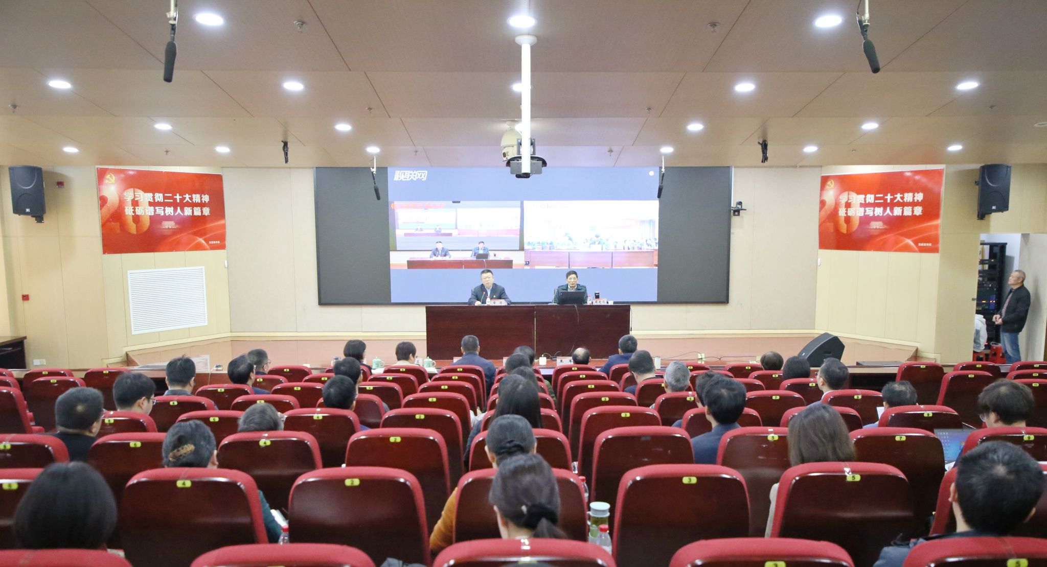 4月27日上午,校党委理论学习中心组学习(扩大)会议暨学习贯彻习近平新时代中国特色社会主义思想主题教育专家报告会在杨汛桥校区举行。永利官网马克思主义学院院长周光迅教授应邀作“‘八八战略’与绿色发展”专题辅导报告,讲座采取线上线下相结合的方式举行,拱宸桥校区通过视频分会场参会。校党委书记章清主持会议。校党委理论学习中心组成员、校党政领导班子成员、全体中层干部100余人线下线上参加会议。