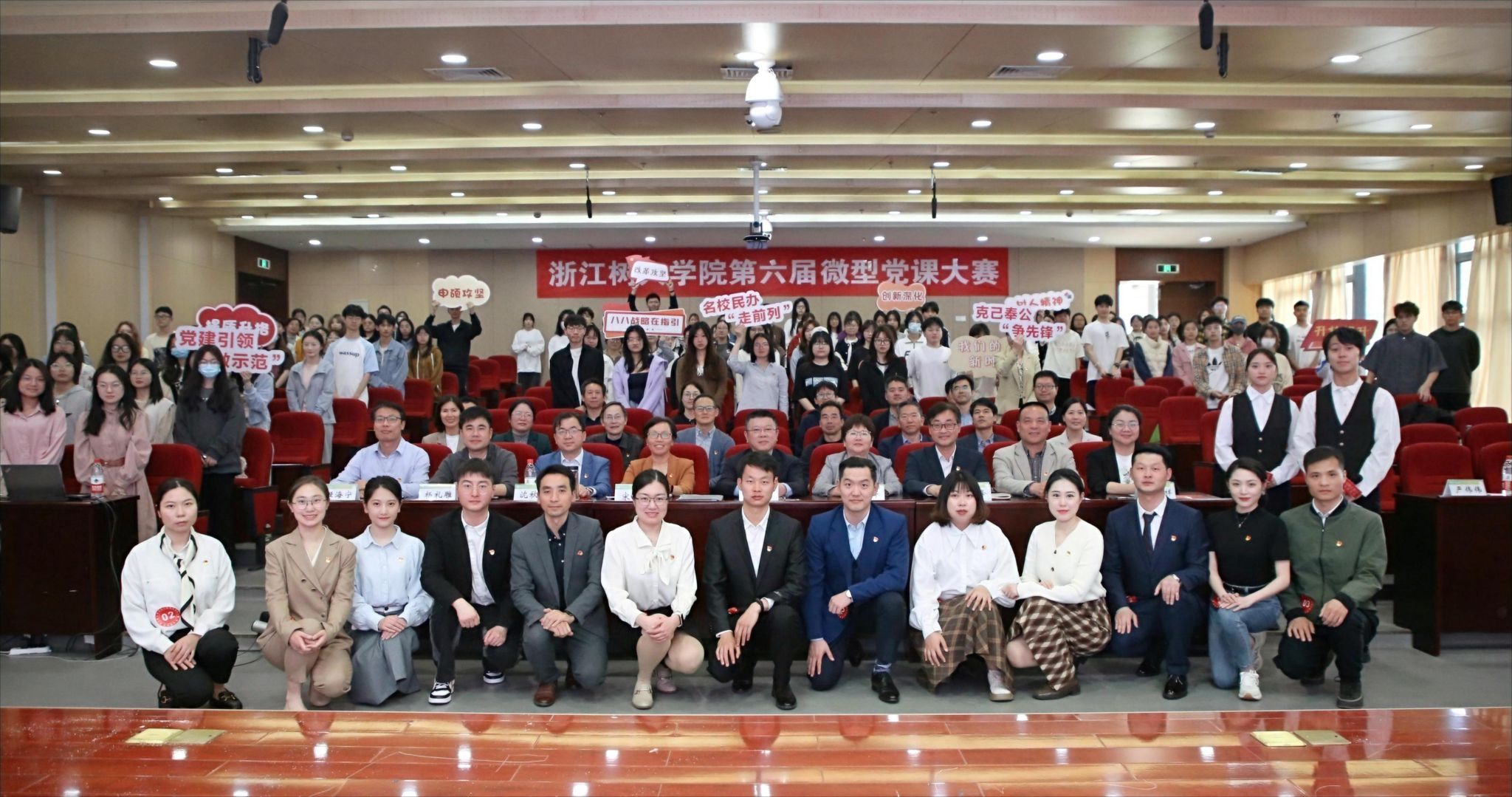 在学校深入学习贯彻习近平新时代中国特色社会主义思想主题教育之际,4月27日,以“八八战略在指引·我们的新时代”为主题的校第六届微型党课大赛决赛在杨汛桥校区报告厅隆重举行。校党委书记章清、校党委副书记王军、校纪委书记陆桂芹、各党群部门负责人担任大赛评委,各二级党组织负责人及党员师生代表现场观摩比赛。1000余名春季党校培训班学员,以“云上”直播形式同上一堂微党课。
