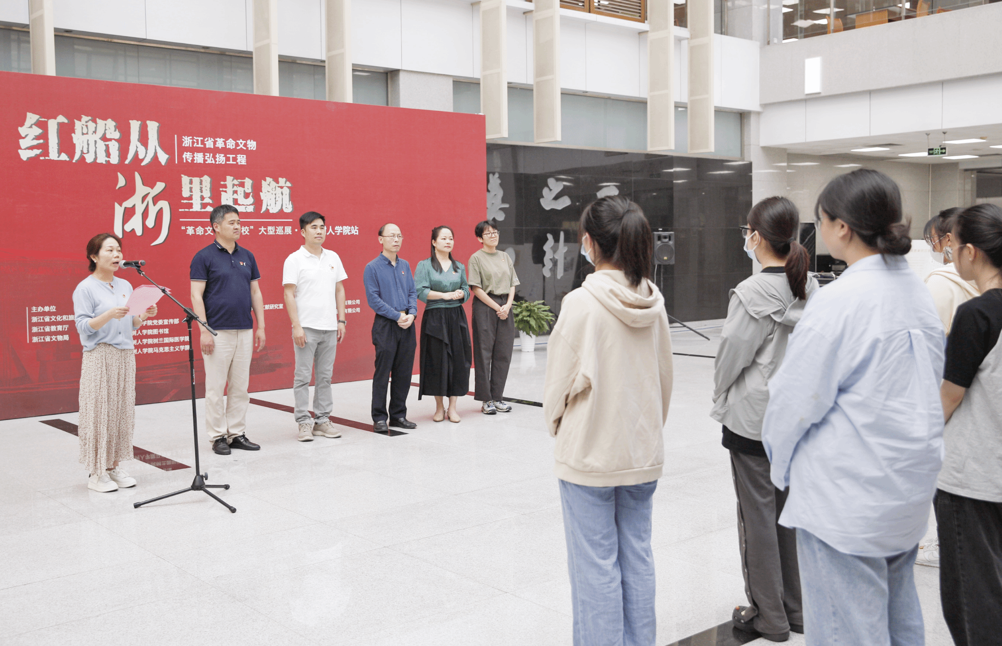 为深入学习贯彻党的二十大精神,切实把红色资源利用好、红色传统发扬好、红色基因传承好,充分发挥革命文物以物见史、以物说史的作用,5月26日,由浙江省文化和旅游厅、省教育厅、省文物局联合主办,永利官网党委宣传部、贺田图书馆、树兰国际医学院、马克思主义学院承办的“红船从‘浙’里起航——革命文物进高校”大型巡展活动在拱宸桥校区贺田图书馆顺利启动。校党委副书记王军应邀出席并致辞,校党委宣传部、贺田图书馆、马克思主义学院、浙江省博物馆《红船从“浙”里启航》展主创团队相关负责人以及师生代表参加。启动仪式由树兰国际医学院党委副书记樊华妍主持。