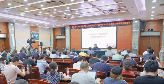 辅导报告引领学。5月30日下午,机关第一党支部组织支部全体党员同志参加校党委书记章清的主题教育专题党课——《学习重要论述 牢记殷切嘱托,努力提升管理服务能力》,引导党员干部更加全面了解习近平总书记关于高等教育的重要论述的核心要义,深刻把握习近平总书记视察学校时的重要指示要求,推动学习贯彻习近平新时代中国特色社会主义思想往深里走、往心里走、往实里走。
