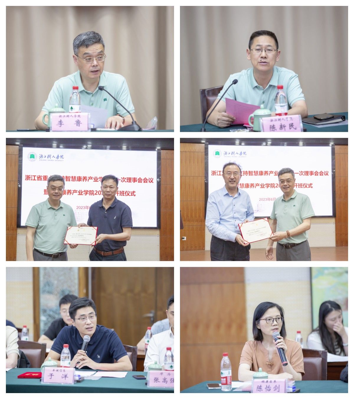 李鲁校长首先代表学校致辞,对理事会成立表示热烈的祝贺,并对长期以来给予学校大力支持的产业界朋友们表示衷心感谢。他说,近年来学校聚焦医工信融合,针对健康养老产业发展过程中遇到的问题,反向设计人才培养、科技创新等举措,取得了一定的成绩,已初步形成教育链、人才链、创新链的有效衔接。召开此次理事会的目的是进一步汇聚产业界的智慧和资源,优化产业学院的体制机制,校企优势互补、互利共赢,在科技研发、教学案例开发、新技术课程建设、教材开发、实践基地建设等方面深入合作,共同将智慧康养产业学院打造成健康养老领域的特色人才培养高地和产教融合创新高地,为健康养老产业的高质量发展和浙江省共同富裕示范区建设做出应有的贡献。