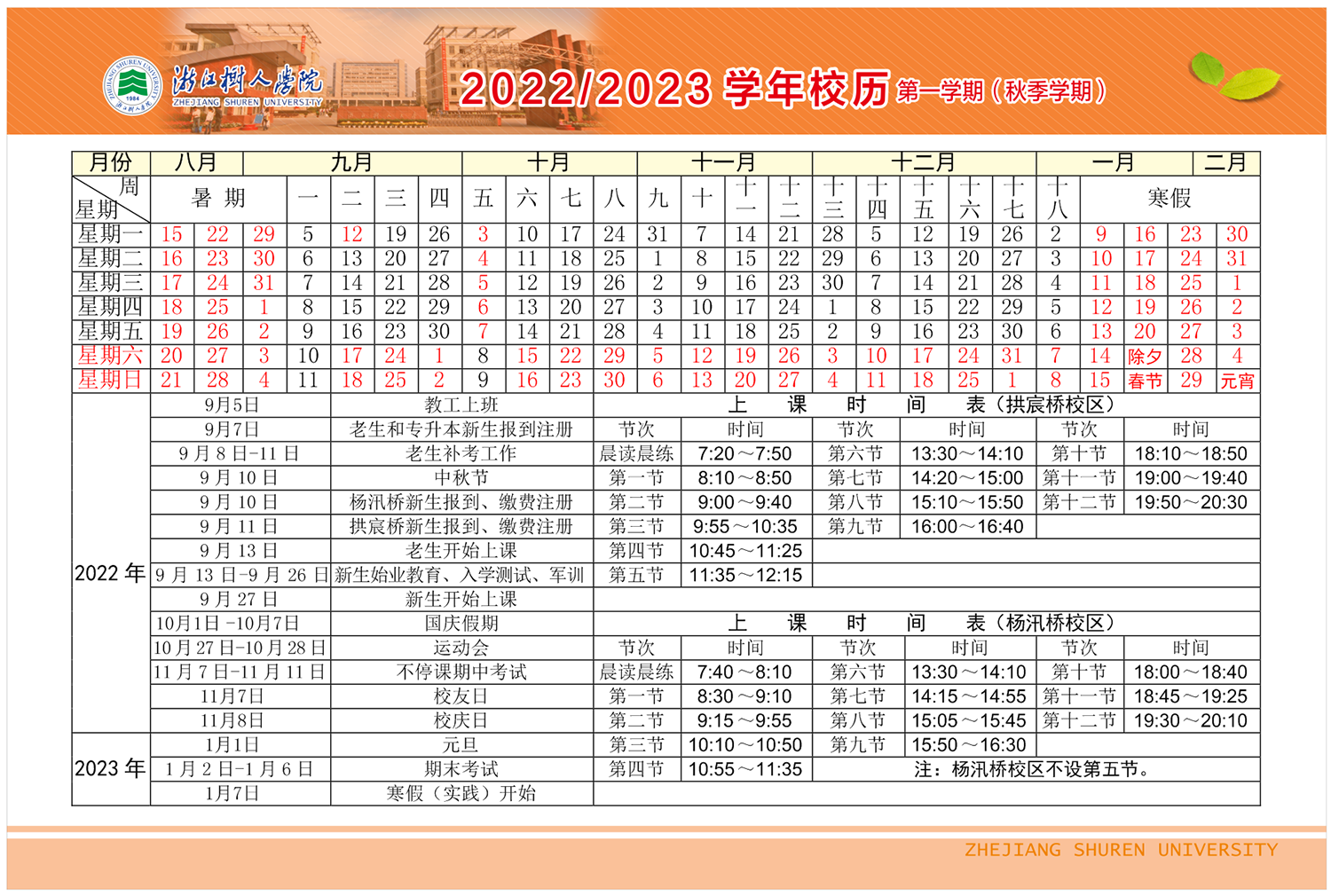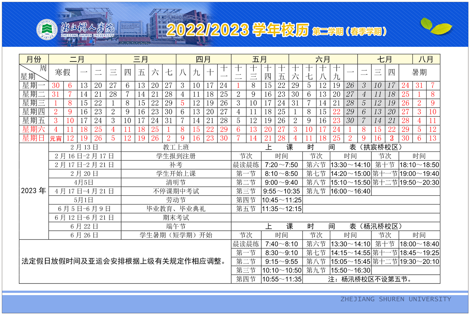 304永利集团官网2022—2023学年校历