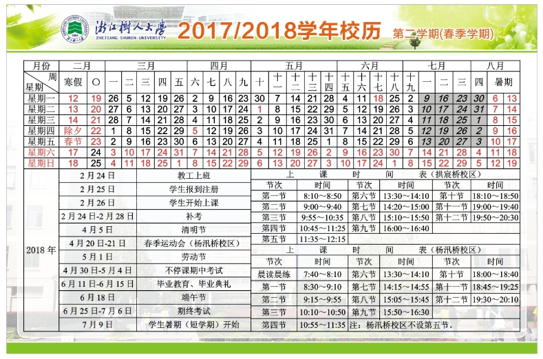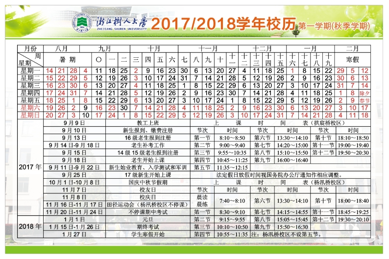 浙江树人大学2017—2018学年校历