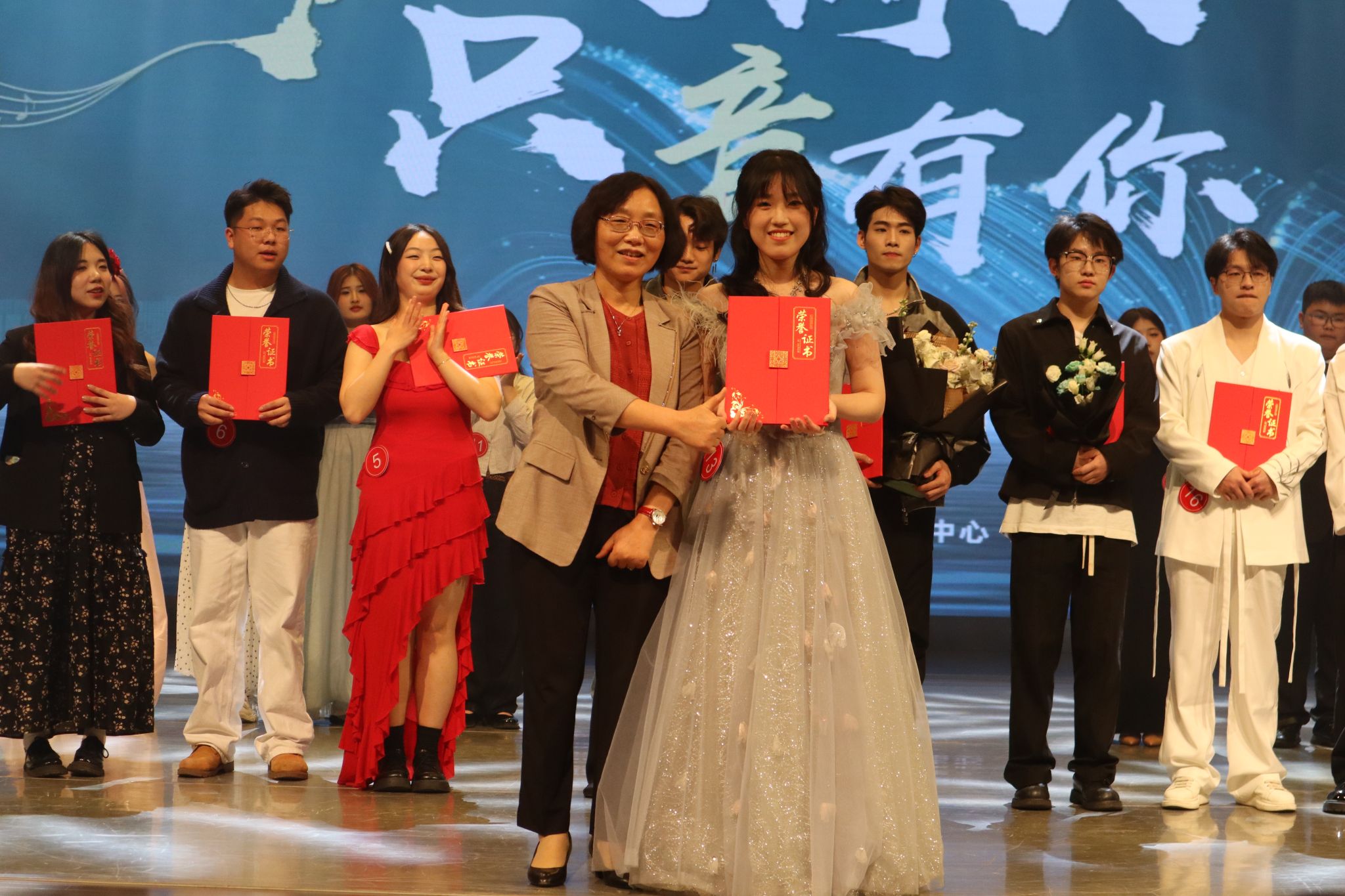 在评委紧张打分的间隙,校艺术团民乐队奏响民乐小合奏《九洲同》,悠扬旋律如春日清风,舒缓了紧张气氛,又为舞台增添别样风情;校声乐博士方一力老师倾情献唱经典美声歌曲《绒花》,其独特的淮河流域山歌音调与浓郁民族风,在方老师的演绎下,宛如天籁,惊艳四座,赢得满堂喝彩。