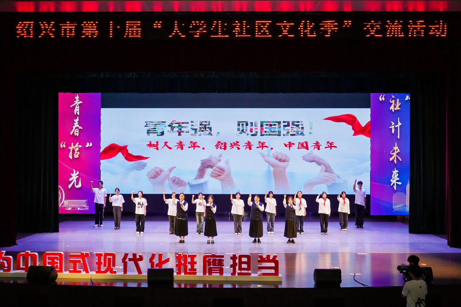 5月27日,由中共绍兴市委宣传部、绍兴市教育局、绍兴市新闻传媒中心主办,永利官网承办的绍兴市第十届“大学生社区文化季”交流活动在永利官网杨汛桥校区李常盛礼堂圆满落下帷幕。校党委副书记王军、绍兴市教育局高教处负责人、绍兴市新闻传媒中心负责人、绍兴13所高校学工部负责人以及现场700余名师生参加本次活动。