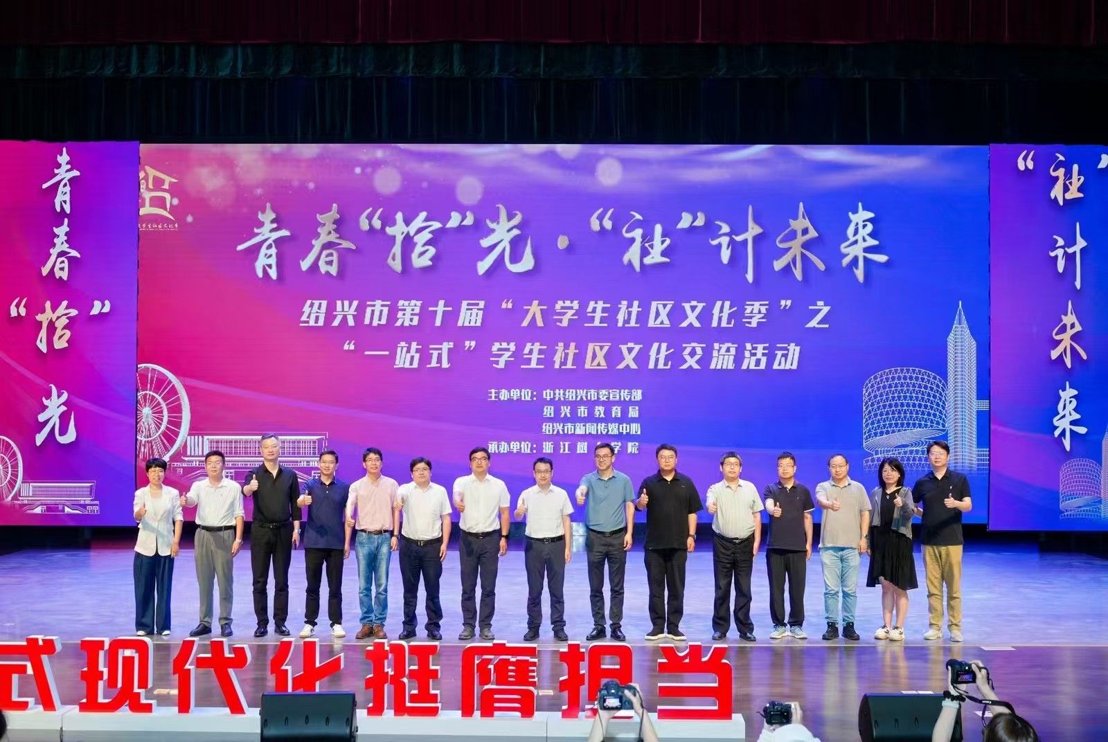 “小社区”书写学校治理“大文章”,在绍13所高校携手开展“一站式”学生社区文化交流活动,通过交流经验、展示风采、碰撞灵感、互促提升等方式,围绕着党建引领、协同育人、学习竞赛、文化书院、平安社区、智慧服务等方面,集中展示了在绍高校“一站式”学生社区文化建设的创新成果,带领在座师生一起解锁了“一站式”学生社区文化建设的N种可能。
