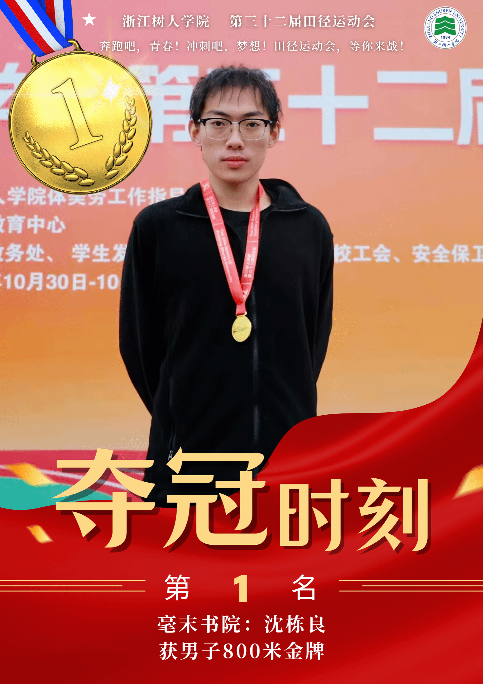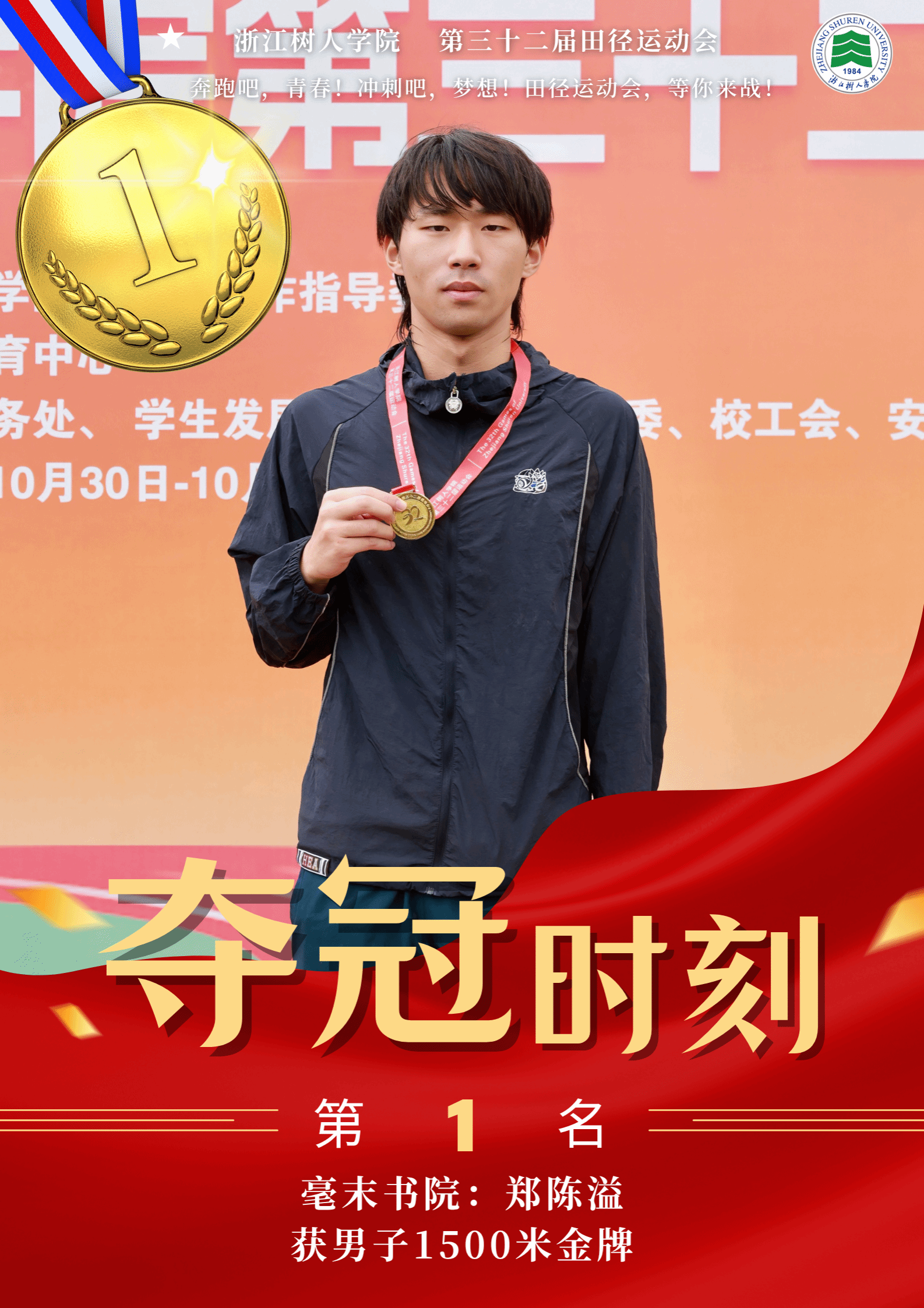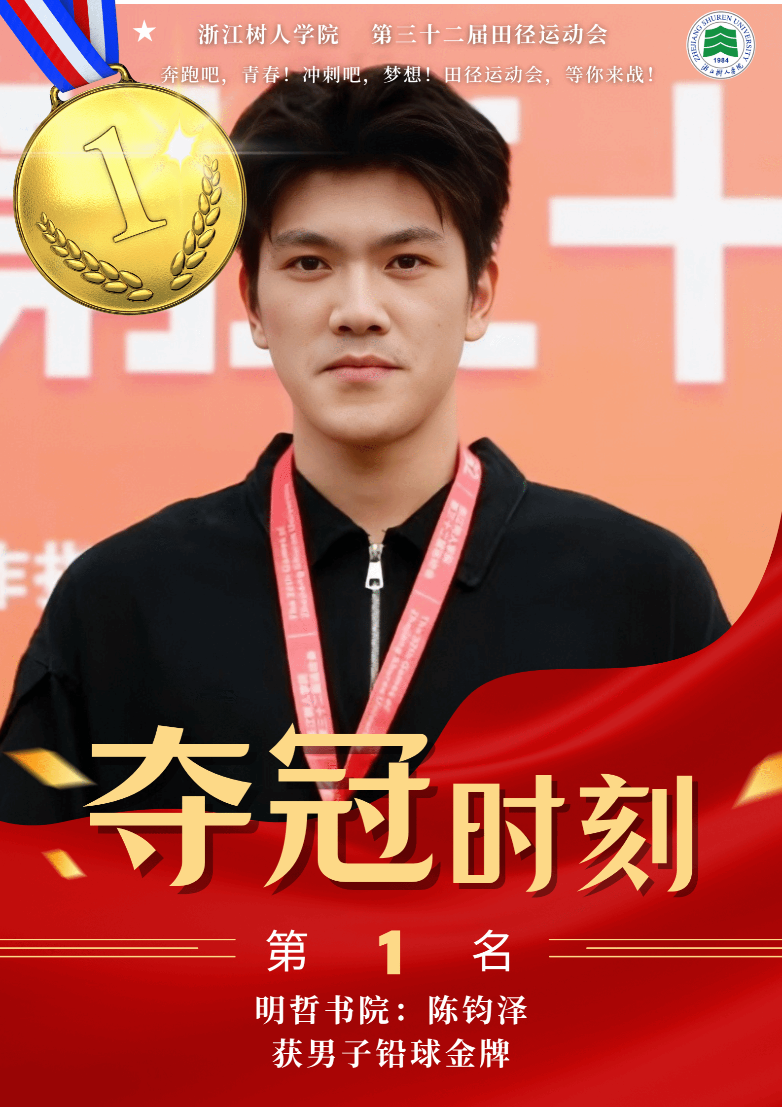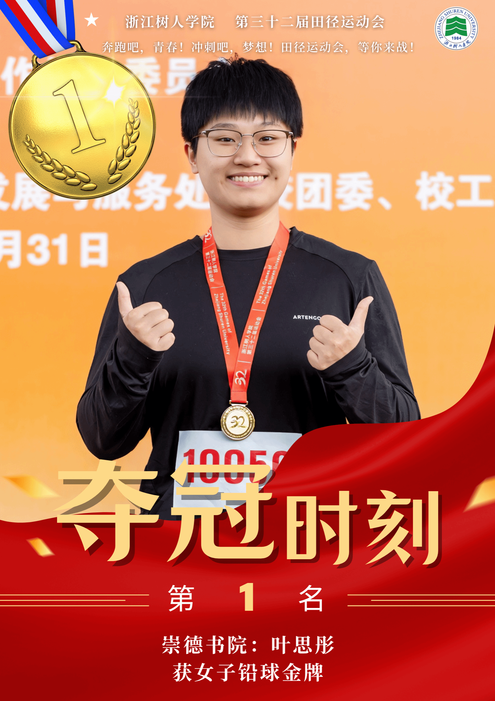 赛场上,运动健儿奋勇争先,以速度与力量挑战极限,以毅力与协作诠释体育精神。男子组中,明哲书院(城建学院)金霁腾、宸阳书院(城建学院)林安城分别以36.38.63和36.43.22的成绩在10000米长跑中打破纪录,并分获冠亚军。女子组中,宸阳书院(经济与管理学院)江畅在100米栏中以17.31秒刷新纪录。集体项目中,崇德书院与宸阳书院分获男子、女子接力冠军,展现出卓越的团队协作精神。